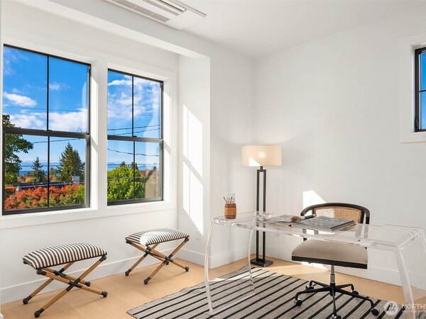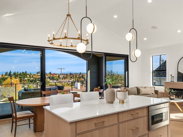 耸人听闻的现代定制新建筑,细节无可挑剔。上层有一个诱人的开放式厨房-客厅-用餐概念,旨在最大限度地欣赏视野。设有华丽的硬木地板、电壁炉、通向大型带顶棚甲板的用餐区,非常适合全年使用。所有这些都享有城市和雷尼尔山的景色。主层设有 2 间卧室,每间卧室均设有相邻的浴室和一间美丽的主人套房,可欣赏城市景观。下层设有主洗衣房和允许的附属住宅单元,设有 2 间卧室和 2 间全套浴室。电梯为所有楼层提供多代同堂的生活服务,主内置扬声器,整个区域的迷你分体式加热空调,光纤电缆。理想的朝西住宅,位于安静的街道上,享有美丽的景色。距离探索公园不远。