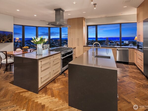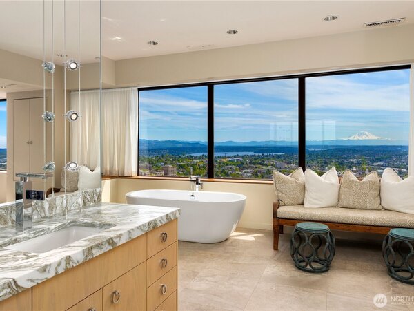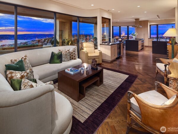 抓住千载难逢的机会,拥有西雅图最大的顶层公寓:一座占地 7,000 平方英尺的屡获殊荣的房产,高耸于西雅图的天际线之上,可 360 度欣赏太空针塔、奥林匹克山和喀斯喀特山、华盛顿湖、贝尔维尤和埃利奥特湾的美景。这座经过全面改造的住宅拥有高高的天花板,玻璃墙在室内和城市天际线之间建立了无缝连接。该物业拥有精心布置的设备齐全的宾客/管家套房、图书馆、私人电梯和大堂、定制的青铜吧台、健身房、两个露台和 6 个安全停车位。居民可以享受室内游泳池、水疗中心、网球场、巡逻保安和 24/7 礼宾服务等设施。提供卖方融资。
