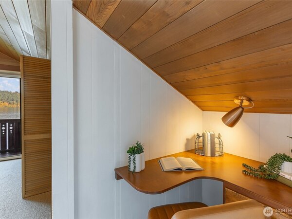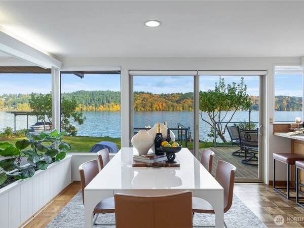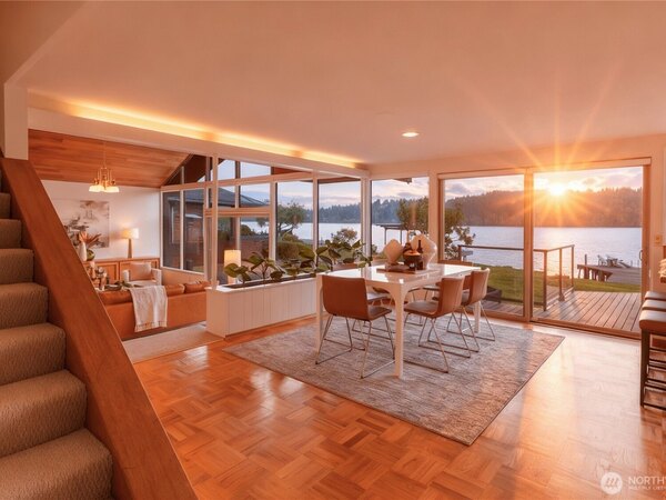 这座标志性的中世纪现代住宅直接坐落在华盛顿湖畔,拥有60英尺的滨水区,东边可俯瞰圣爱德华公园,南侧可眺望贝尔维尤天际线和雷尼尔山。为湖泊和山景设计的玻璃墙框住不断变化的日出和日落倒影。这座开放式住宅拥有雪松木板大教堂式天花板、高耸的壁炉、阁楼式主套房、深水码头和停泊浮标、罕见的湖滨草坪,既可招待宾客,也可放松,拥有超大双车库、太阳能电池板以及地下室和工作间。这个罕见的湖滨保护区,距离华盛顿大学、东区、市中心、伯克-吉尔曼步道仅几分钟路程......这也许就是你的新家!