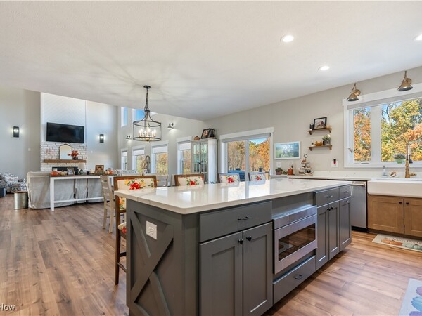 在这座占地近 24 英亩的精致 5 卧室农舍庄园中体验现代乡村生活的艺术。这座住宅将永恒的魅力与精致的奢华融为一体,提供轻松的精致和舒适。走进去,明亮、阳光明媚的内饰采用宽板 LVP 地板、清爽的白色饰面和优雅的农舍设计。开放式厨房是家庭的核心,配有宽敞的岛台、厨师品质的炉灶、豪华冰箱和用于准备工作的管家储藏室。在主起居区,高耸的 24 英尺天花板、落地壁炉和定制窗户让空间充满自然光。一楼的业主套房提供宁静的休憩之所,可欣赏乡村美景、水疗风格的浴缸、木横梁、私人门廊通道和定制的步入式衣柜。第二间一楼套房与业主的套房相呼应,非常适合客人、姻亲或多代同堂的生活。每个空间都结合了美观和功能,从正式的餐厅和办公室到带有定制洗狗台的泥房——实用性和风格的完美结合。楼上设有三间大卧室和宽敞的阁楼,提供舒适和灵活。步入式地下室提供了无限的可能性,有一个独立的入口,非常适合家庭商务或娱乐。在户外,享受近 24 英亩的风景秀丽的牧场,非常适合园艺、放牧或只是欣赏开阔的乡村景色。一个 80x44 的杆式谷仓,配有厨房和全套浴室的管道,专为马厩和拖车通道而设计。周到的细节包括节日灯的屋顶插座、牧场消防栓和为未来游泳池准备的配电盘。这家非凡的房产捕捉了现代宅基地度假胜地的精髓——一个深呼吸、自由接待和美丽生活的地方。