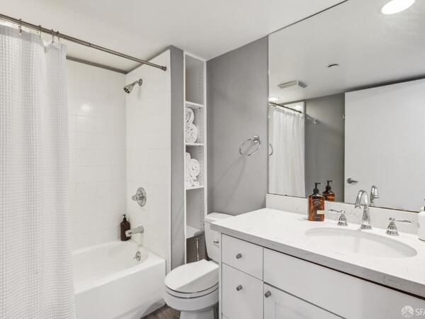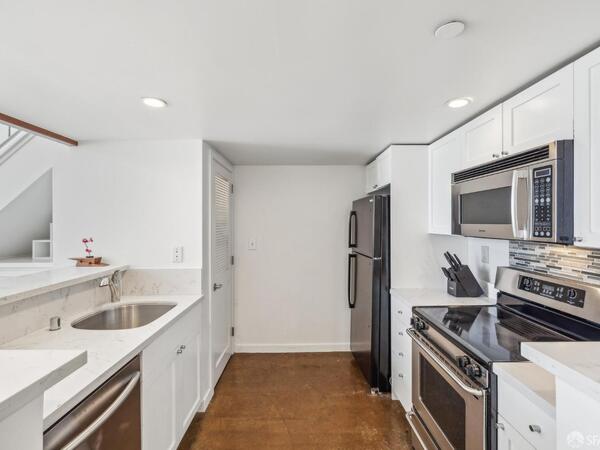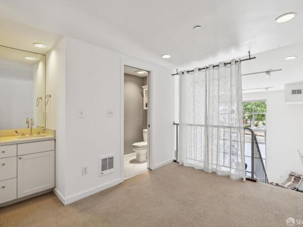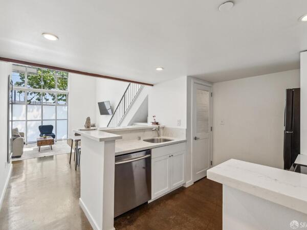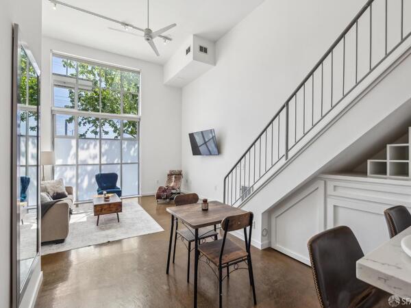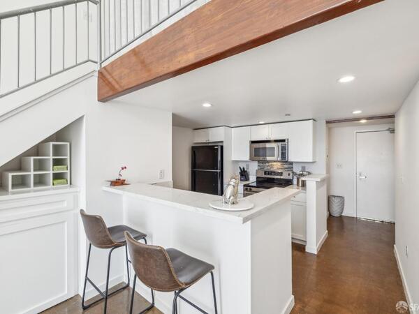 在布莱恩特街 1800 号探索最好的城市生活,这套阁楼式公寓已准备好欢迎您回家。厨房是一个烹饪梦想,配有石材台面和摇床柜,融合了风格与功能,而落地窗则让空间充满自然光。厨房半岛和酒吧为烹饪和娱乐营造出温馨的氛围,并配有时尚的后挡板,为家居中心增添了一抹个性。酒吧对面是一个用餐区,通向宽敞的客厅,是举办下一次晚宴的理想平面图。 客厅拥有高高的天花板和巨大的窗户,营造出通风和宽敞的感觉。这一层还包括一间设施齐全的浴室、洗衣柜和储藏室。上楼,主套房/阁楼从两侧的窗户沐浴在自然光线中。主浴室提供灵活性,淋浴和卫生间与水槽区分开。一个巨大的步入式衣柜完善了主阁楼。距离前门仅几步之遥的共用露台享受户外活动,露台设有燃气烧烤设施和充足的户外座位,可供用餐或品尝早晨咖啡。准备好以 97 分的步行分数享受旧金山的最佳状态。方便的高速公路和 Muni 交通。