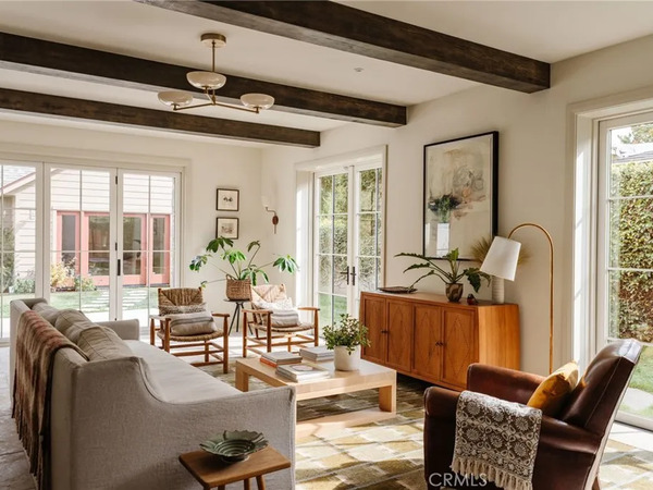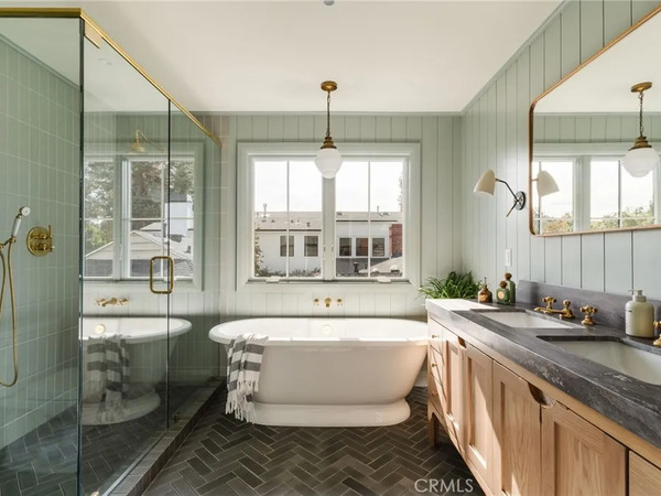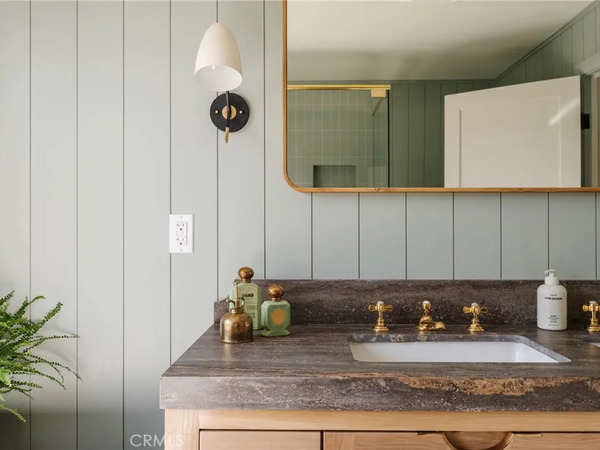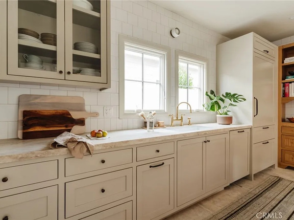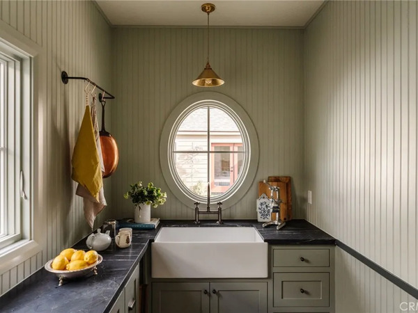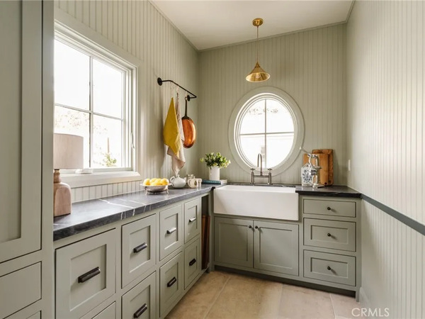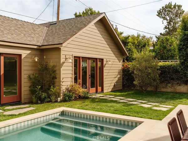 这座新建住宅坐落在Studio City最受欢迎的社区之一Colfax Meadows的中心地带,由Mercantile & Merchant与Perella Architects合作精心设计和建造。从装置和家具到墙纸和色彩调色板,每一个元素都经过了精心考量,打造出既精致又温馨的家。设计充分利用了周围的自然景观和自然光,营造出温暖、均衡的生活环境。定制木工遍布整个房间,为每个房间增添质感和工艺。正式的客厅拥有拱形天花板、经典的砖砌壁炉,以及引人注目的窗户,窗户框住了一棵成熟的木兰树,位于雪松围栏的前院。主层设有氛围浓郁的化妆间、优雅的洗衣区和专用用餐区,通向宽敞的大厅和厨师厨房。厨房配备了泰姬陵石质台面、高端电器以及定制步入式洗碗间,既实用又美观。大型折叠门完全敞开,后院被高大的树篱环绕,营造出室内外自然流动,带来真正的宁静氛围。楼上的主套房包括宽敞的步入式衣橱、带步入式淋浴和独立浸浴浴缸的水疗浴室,以及可俯瞰山景的私人阳台。另外还有三间带套间的卧室,各自展现出独特的个性和魅力。后院是一个私人度假区,主屋和带有独立生活区的全尺寸附属住宅之间设有一个阳光充足的游泳池