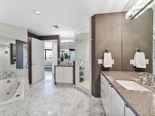 Luxury Living Elevated Crystal Point,凤凰城中城。欢迎来到凤凰城中城中心的高层奢华生活巅峰。这座经过精心重新设计的 2 卧室 2 浴室住宅位于标志性的 Crystal Point 塔楼的 11 层,设有私人办公室,提供现代精致和绵延数英里的天际线全景。自然光线充足,开放式布局散发着优雅气息。美食厨房是厨师的梦想,拥有定制橱柜、闪闪发光的石英台面以及全套顶级 Miele 和 KitchenAid 电器。在 Crystal Point,奢华超越了住宅。享受 24 小时门卫和礼宾服务、度假村风格的温水游泳池、最先进的健身中心、访客套房,甚至还有用于私人活动的设备齐全的餐饮厨房,让您享受白手套服务。其他设施包括安全的地下停车场、高速互联网和您自己的露台烧烤燃气连接,提供重新定义高层生活的生活方式。沿 Osborn 向西行驶至右侧的 Crystal Point 入口。将车停在访客停车场,然后步行至大楼入口。要求访问。