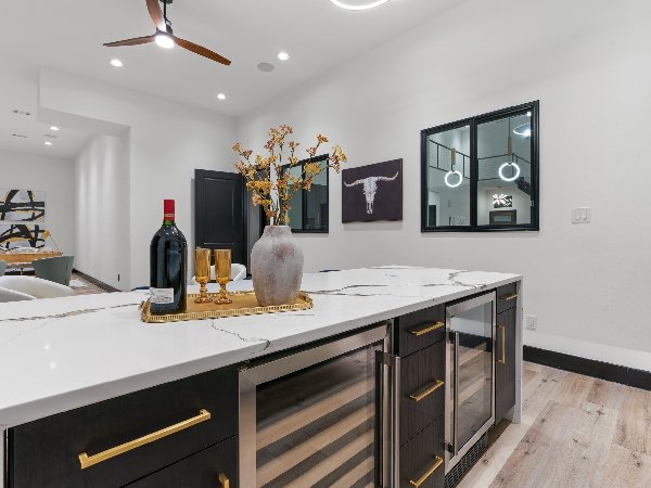 欢迎来到 9818 Witham Street – 奢华与现代优雅相遇的地方。这座令人惊叹的新建筑是艺人的梦想家园!它的设计考虑到了风格和功能,拥有高耸的天花板和充足的窗户,让家充满了自然光,与微风轻拂的开放式平面图相得益彰。这座住宅非常适合举办家庭聚会或大型活动,提供四间卧室和三个多功能起居和娱乐空间,确保为所有人提供充足的空间。主厨厨房位于住宅的中心,这是一个美食天堂,配备了商用级不锈钢器具、定制橱柜和宽敞的定制设计储藏室。毗邻的楼下时尚酒吧区是观看大型比赛或与朋友共饮饮品的终极聚会场所,同时俯瞰后院绿洲。楼下还有一个专门的办公空间,就在厨房旁边,距离主套房仅几步之遥。楼下的主套房是一个独立的度假胜地,拥有超大布局、带瓷砖的豪华套间浴室、双淋浴喷头、浸泡浴缸、双梳妆台和宽敞的双人步入式衣橱。楼上设有适合放松或玩耍的阁楼空间,以及供家庭或客人入住的额外卧室以及媒体室。走出去,来到您的私人后院避难所。带水疗中心的波光粼粼的游泳池、充足的绿地和配备两个葡萄酒冰箱的专用娱乐角,使这个空间成为举办活动或在宁静中放松身心的理想场所。这座住宅位于 Midway Hollow 的中心地带,距离达拉斯的顶级私立学校仅数分钟路程,提供无与伦比的便利、风格和精致。无论您是娱乐还是放松,9818 Witham Street 都是您称之为家的理想场所。千万不要错过这个独一无二的房产!