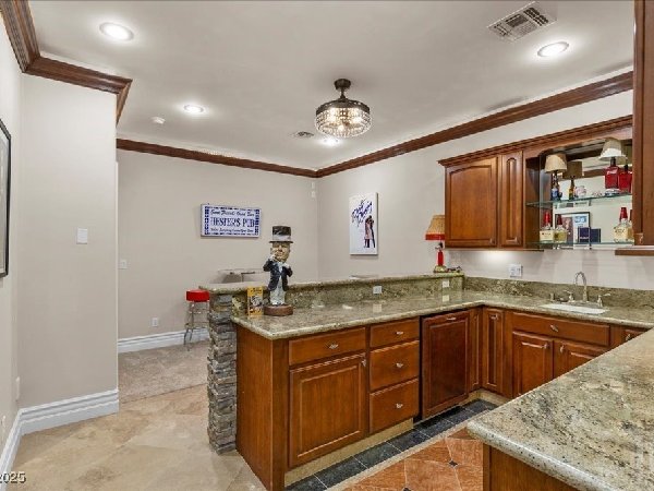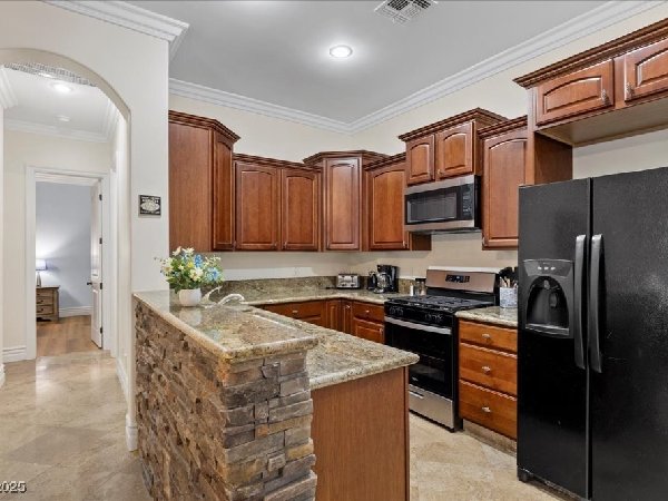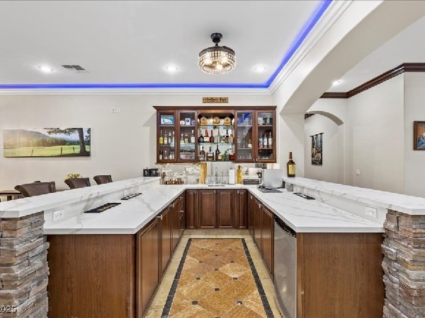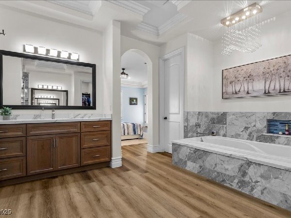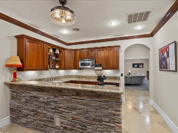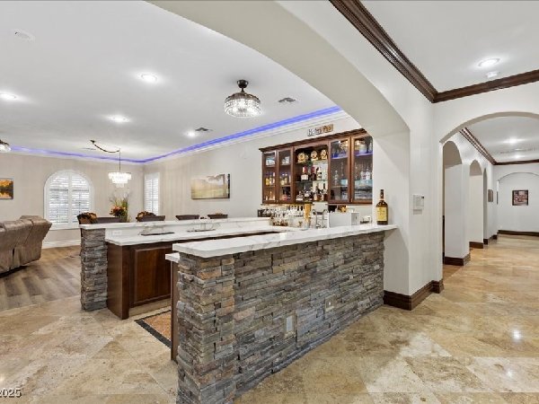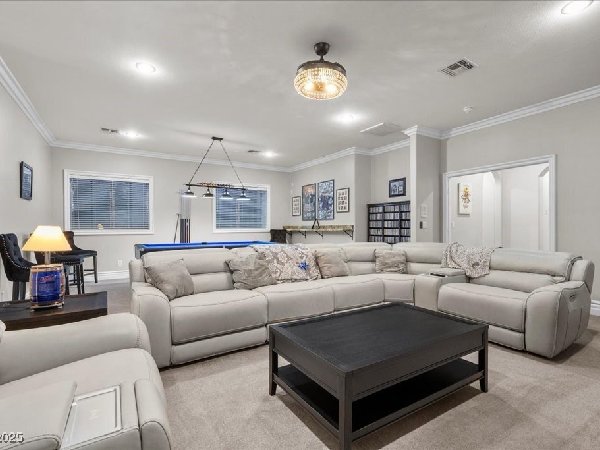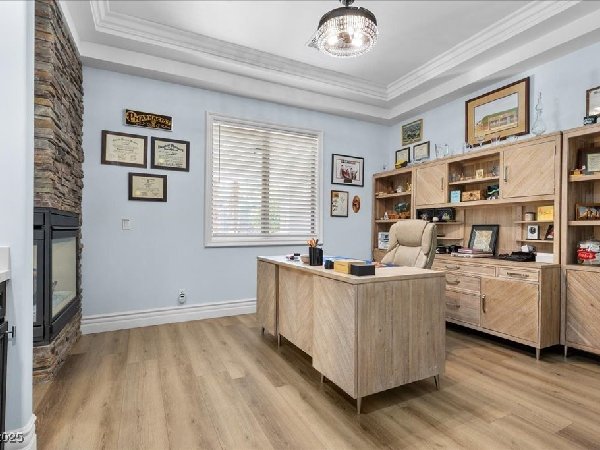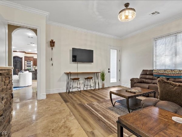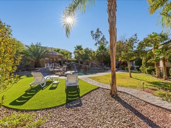 欢迎来到这座经过精心翻新的单层住宅,坐落在半英亩的私人封闭社区内,设有地下室和电影院,还有更多设施。特色包括更新的台面、家庭活动室和图书馆的两扇新推拉门,以及翻新的主浴室,配备新的淋浴和浸浴浴缸,全面更换地板等。开放式布局提供明亮的生活空间、精致厨房和升级装修的宽敞主套房。2000平方英尺的地下室设有家庭影院和灵活空间,非常适合游戏室、健身房或储藏室。所有电视都包含在促销中。附属的小屋为宾客提供了极佳的空间。该物业还设有4至6车位的车库,以及一个两侧均配备全套连接的超大房车车库。今天就预约您的展示吧。