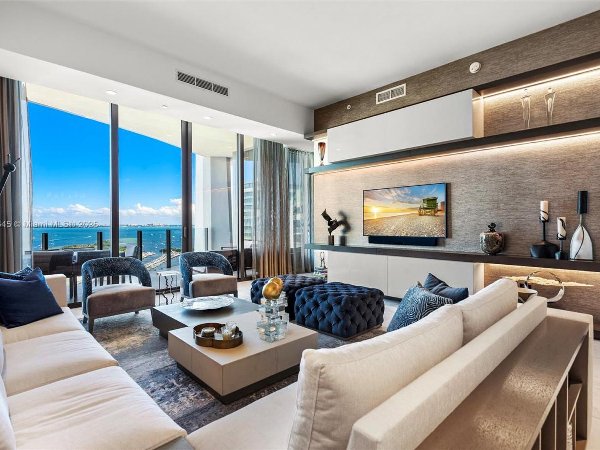 在这座经过全面改造的 19 层住宅中体验 Park Grove 的奢华体验,欣赏比斯坎湾的壮丽景色。这座 3 卧室、3.5 浴室的住宅由 Adriana Hoyos 全面翻新和重新设计,铺有白色大理石地板、定制木制品以及带 Sub-Zero 冰箱/冰柜、Wolf 燃气灶和蒸汽烤箱的 Italkraft 厨房。宽敞的主套房设有私人阳台、双步入式衣橱以及带浸泡浴缸和双盥洗池的水疗式浴缸。两间带连接浴室的卧室、一间带内置插件的超大办公室和一面隐藏的储物墙完善了布局。五星级设施包括 24/7 代客泊车、礼宾服务、4 个游泳池、健身房、水疗中心、私人餐厅、酒窖和剧院。享受 Coconut Grove 的终极生活方式