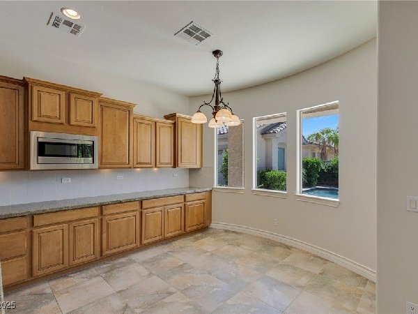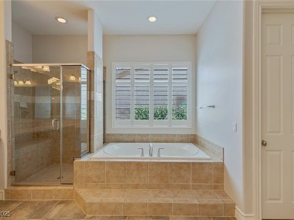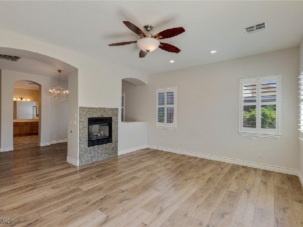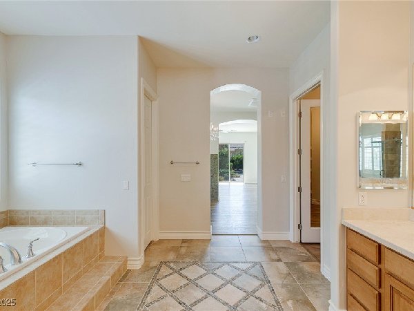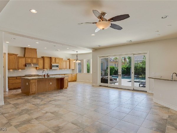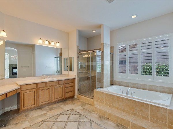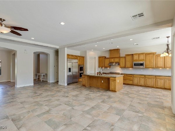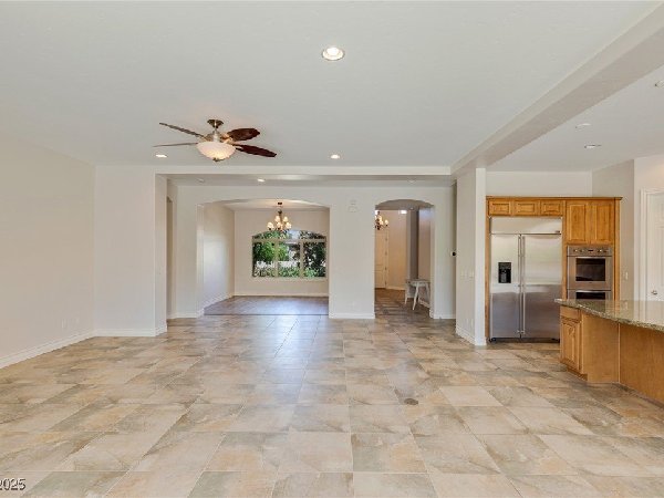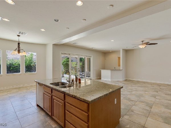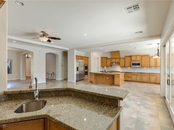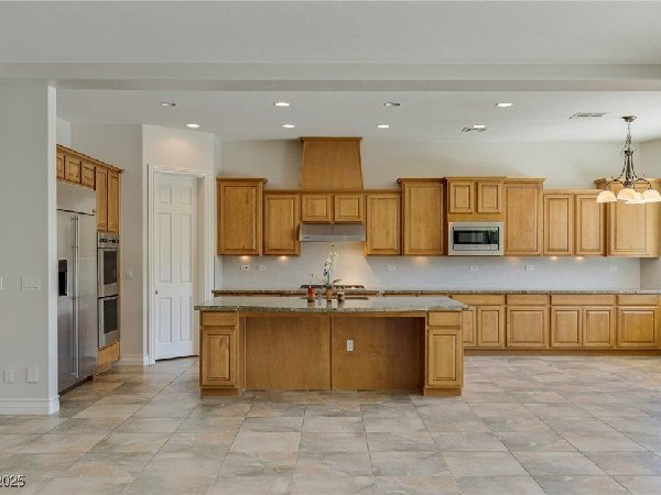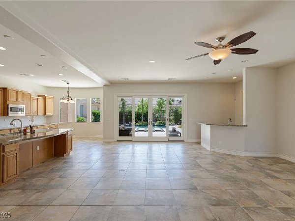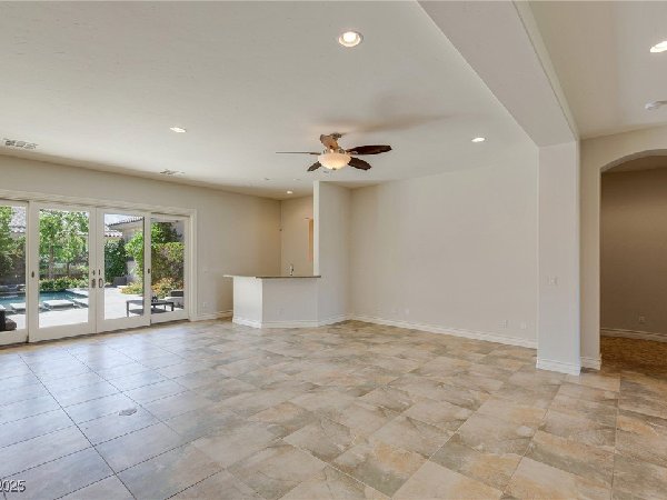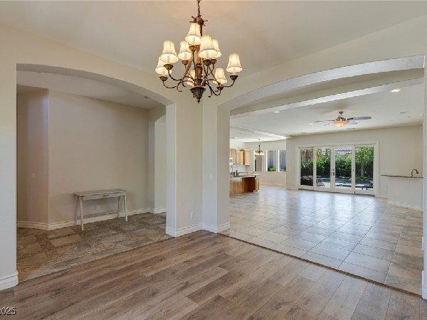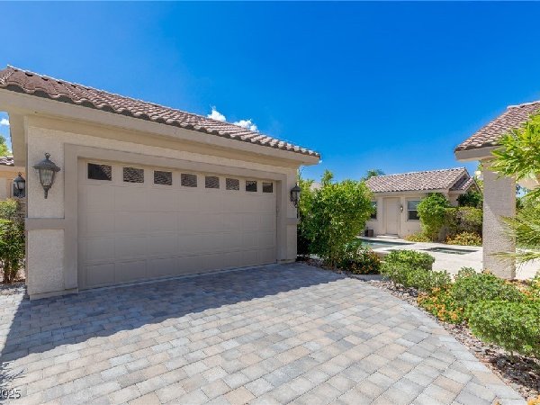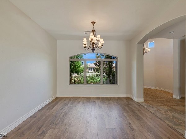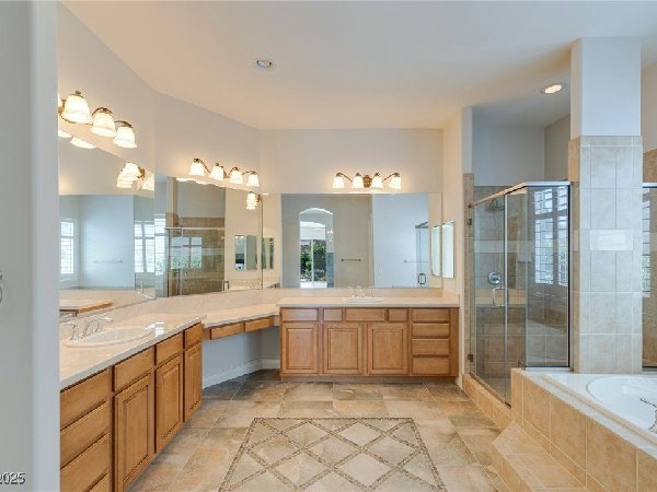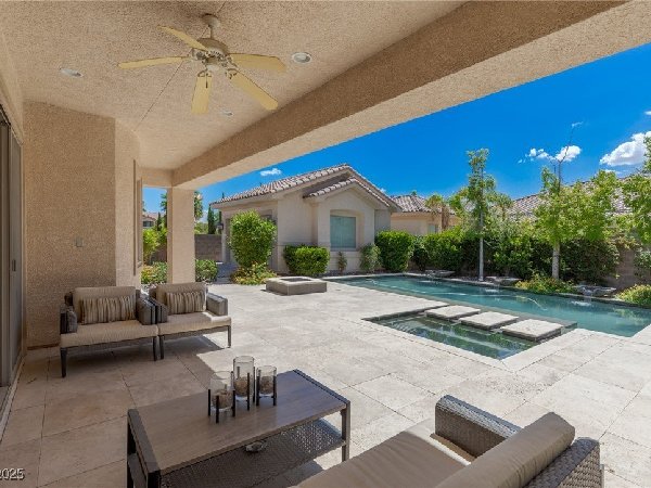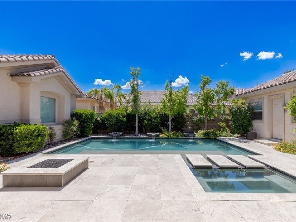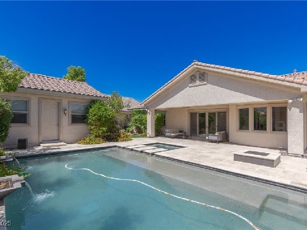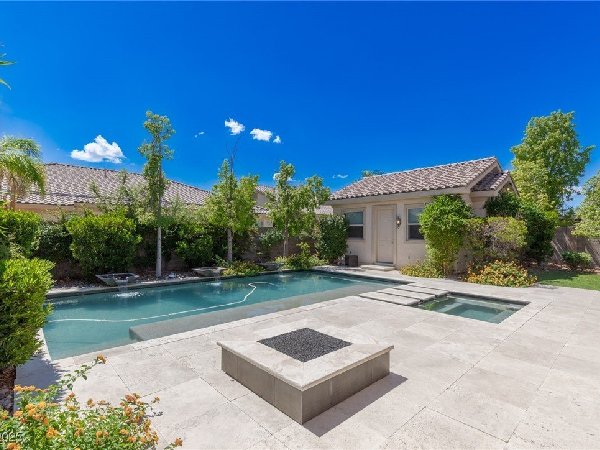 拉斯维加斯美景——真正的沙漠绿洲! 在这座精致的单层住宅区中,体验优雅、舒适与实用的完美结合,提供5间卧室、5间浴室和5个车库空间——包括客房、度假风格的泳池与水疗中心,以及房车停车场! 穿过宏伟的入口,进入一个开放式客厅,特色是拱形天花板、优雅的瓷砖地板和精致的正式餐厅。主厨厨房堪称视觉焦点,配备了高级不锈钢电器、大型中岛和宽敞的步入式储藏室。你可以在郁郁葱葱的度假风格后院放松或招待宾客,后院设有可俯瞰闪耀泳池和水疗中心的有顶露台。 其他亮点包括: 为来访的家人或朋友提供客房 附带的三车停车场和带有车道的房车停车场,可通往独立的两车车库。