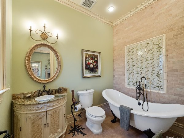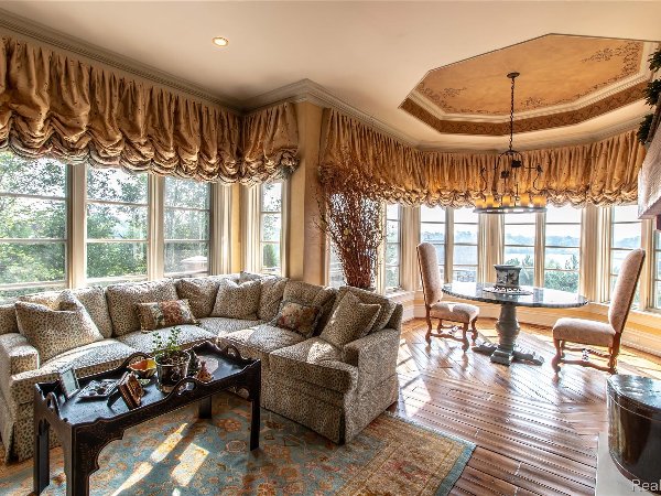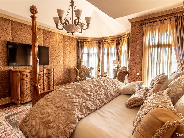 这座宏伟的获奖建筑杰作带有意大利别墅的风味,坐落在俯瞰Turtle Lake的悬崖上,俯瞰Buttertle Lake,位于Bloomfield Hills的Turtle Lake Estates专属区域内。这座非凡的住宅区占地超过2万平方英尺,设计精致,兼顾温暖、优雅与舒适。这座精致住宅区旨在充分利用户外环境,拥有有顶露台、石质露台、独一无二的庭院泳池、户外壁炉、壮丽的多年生花园景观、裸露的骨料车道,以及可容纳8车位的加热车库,配备洗车场。这座定制建造的庄园以多位驻地工匠精心打造的精致艺术细节和奢华装饰令人惊叹。定制工厂工艺、威尼斯灰泥和丝绸软垫墙面、金箔和木板天花板、进口大理石和马赛克墙体。其他设施包括两层高的行政图书馆、正式的客厅和餐厅、配备高端电器的主厨厨房以及多个休息室。装修精美的下层,设有星空夜影院、健身房、桑拿、酒吧、游戏室、娱乐室、完整的泳池厨房等设施!智能家居、闪电系统、Moen水阀、Ting电力监测、水处理系统,以及配备运动/重量检测和红外线的广泛监控和报警系统。5个室内壁炉和2个室外壁炉。住宅出售时包含了向西的空置地块。