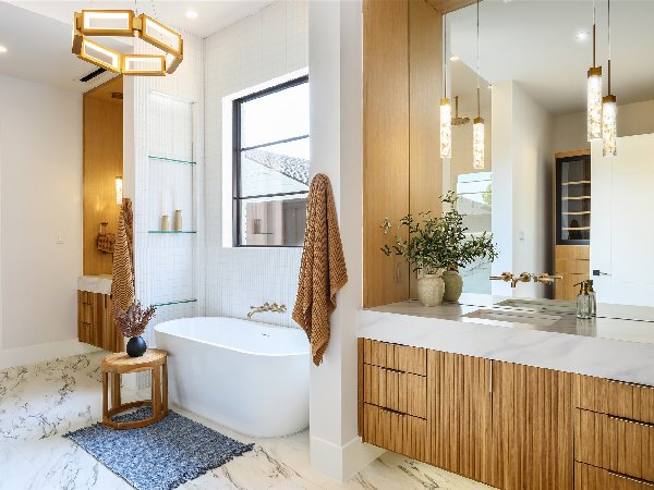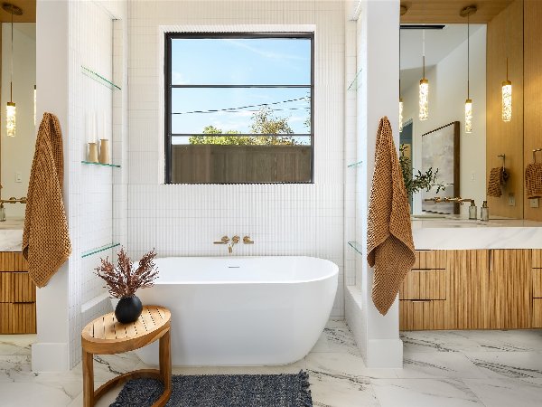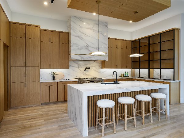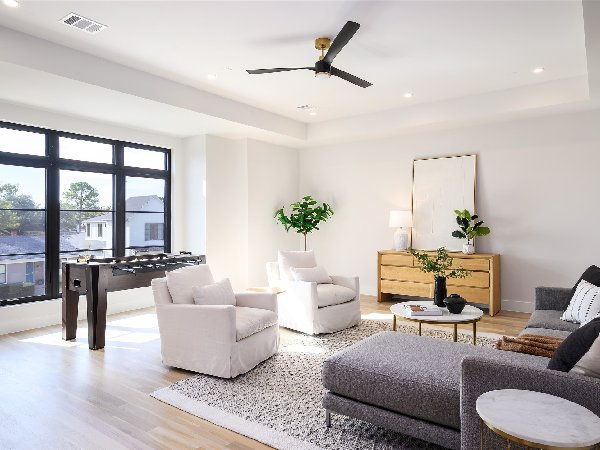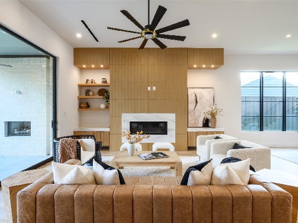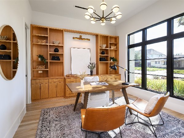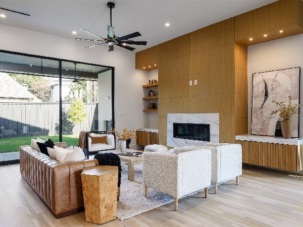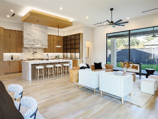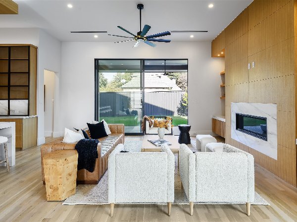 这座由屡获殊荣的第三代Chris Sandlin Homes打造的温馨现代展示,这座4750平方英尺的住宅将引人注目的建筑与轻松宜居完美融合。浅色砖墙、黑色金属屋顶线条和宽敞的黑色窗户通向室内,室内铺设实心橡木地板、光滑的画廊墙面和定制的裂缝锯白橡木橱柜。开放式大厅高达12英尺,由一座建筑楼梯和一个时尚的48英寸蒙蒂戈线性壁炉支撑,与餐厅和配备Monogram家电的主厨厨房无缝相连,配有内置照明的石英包裹瀑布岛、全高的板式挡板和排风罩、带酒窖的湿吧和隐藏的步入式储藏室。安静的前置书房提供内置家具和自然采光。主层主卧套房是一个宁静的度假地,特色是白橡木天花板横梁和一个水疗浴缸,浴缸内设有独立浸浴浴缸,浴缸下方悬挂着醒目的吊灯,还有带悬浮长椅的大型步入式淋浴间和定制双梳妆台;宽敞的定制衣橱直接连接一楼洗衣房,方便日常使用。楼上是宽敞的游戏室,配有酒吧,四间带独立套间的卧室和第二间洗衣房。全年户外生活环境闪耀,设有有顶露台、燃气壁炉、全厨房和可俯瞰平坦围栏院子的电动屏风。除了美观,房屋还提供了卓越的性能:精心设计的地基、优质保温、耐用的金属屋顶、无储水式热水器和全面的安全系统。用心设计、高雅的饰面和卓越的制造——现代奢华,臻于完美。