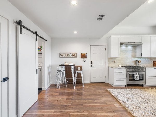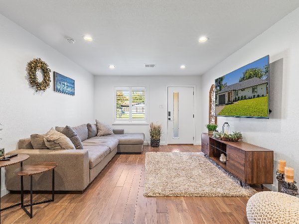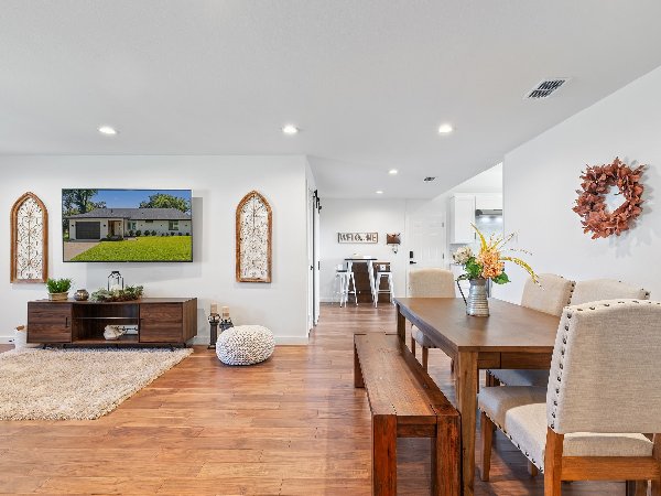 欢迎来到12130 Dandridge Drive——这是一栋经过惊艳翻新的三居二卫现代工匠风格住宅,价格完美,达449,000美元。这座住宅隐居于宁静的汉密尔顿公园社区一处安静的室内空地,将时尚设计与日常实用性完美融合。走进屋内,即可发现一个通透、开放式的平面布局,拥有丰富的硬木地板和充足的自然采光。美食厨房堪称亮点,配备高端不锈钢电器、农舍式水槽、定制摇杯柜、步入式储藏室和华丽的巴西石英台面;这些都设计成方便烹饪和招待客人。宽敞的主套房是真正的度假胜地,拥有10英尺高的天花板和带有独立浸浴浴缸、雨水步入式淋浴和双洗手盆的水疗浴缸。另外两间卧室共用一个焕然一新的浴室,使这个家既实用又美丽。户外则有私人后院和雪松隐私围栏,为户外用餐或休闲夜晚营造出完美的背景。安心感伴随着2023年的全面升级,包括更新的暖通空调系统、泡沫保温、更新的管道、喷淋系统以及新漆室内油漆。这座可快速通达主要高速公路、餐饮、购物及北达拉斯的一切,这座可立即入住的房子是一难得的选择。