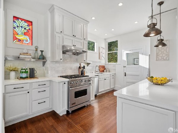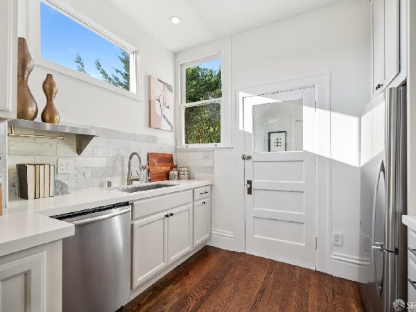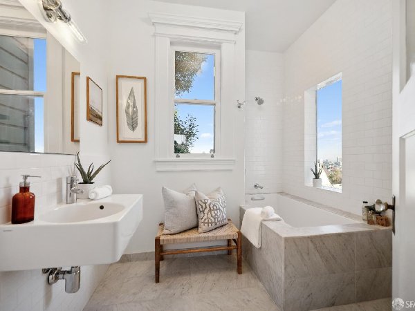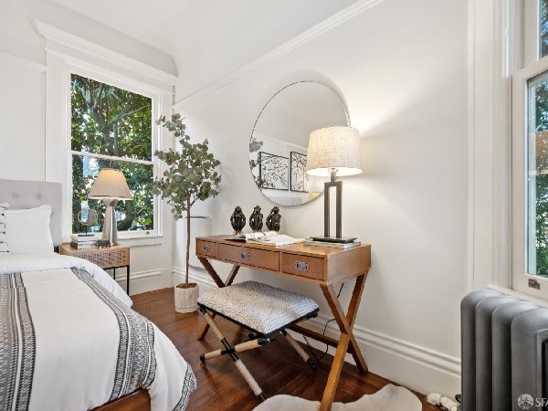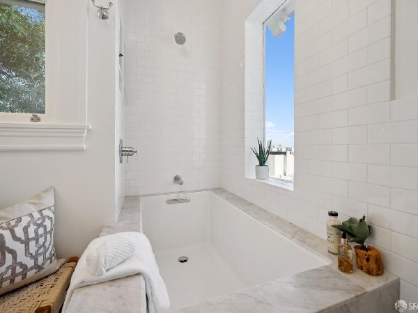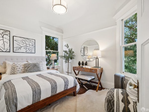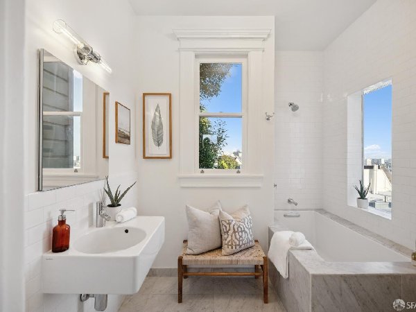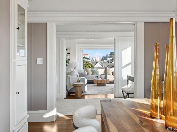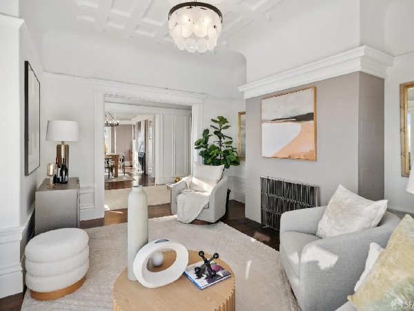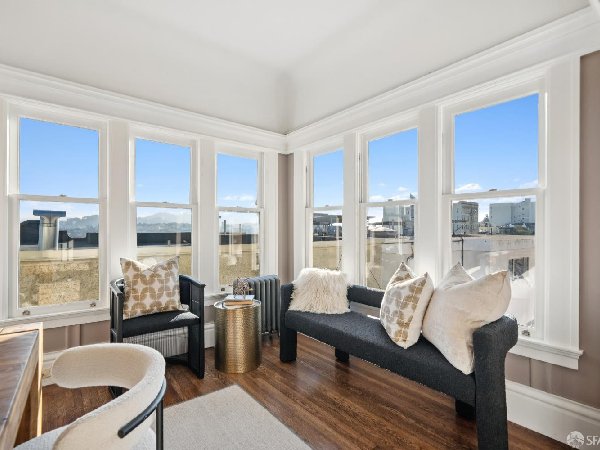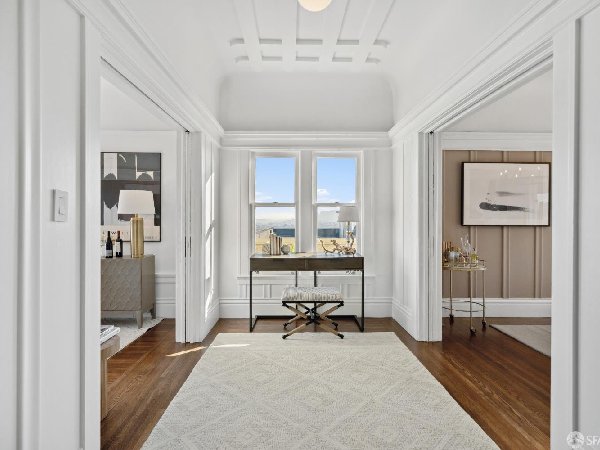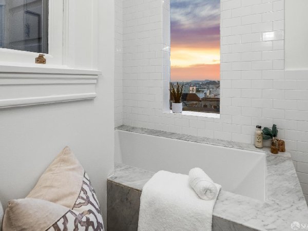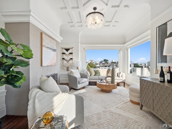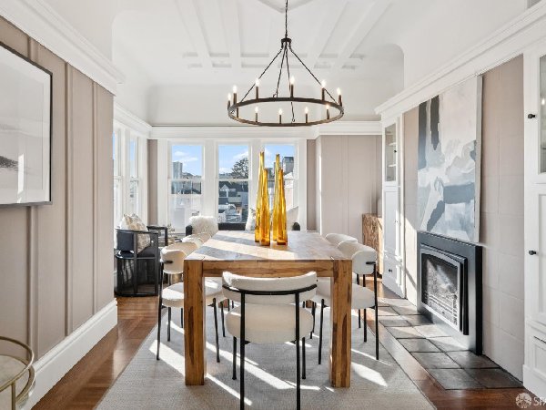迷人的2居室顶层工艺美术风格住宅,拥有奢华的时代细节和壮观的全景——宛如天空中的小屋! 四面皆有窗户,明亮明亮,宽敞的正式客厅和餐厅——两者都配有壁炉。豪华厨师厨房,石英台面和丰富的橱柜,两间宁静的卧室和一个带浸浴浴缸的水疗风格大理石浴室。单元内洗衣房,现场有大型可上锁储藏室,旁边还有车库停车位。在杰克逊露台楼梯顶端。精彩、崇高且独一无二!