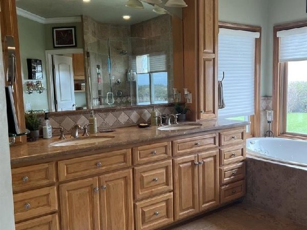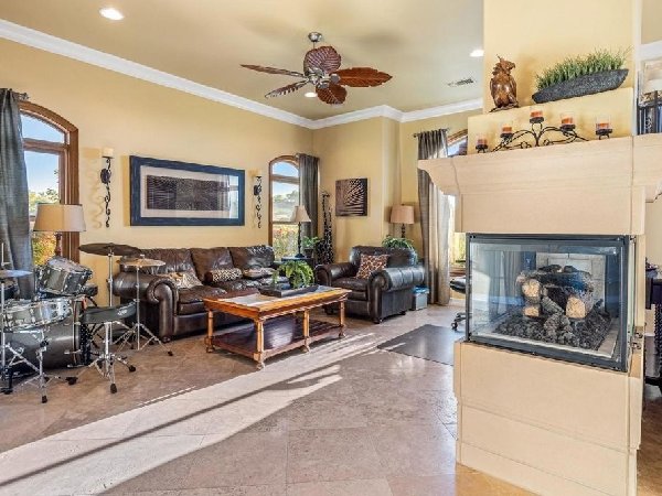 这座有门禁的住宅区以美丽的棕榈树为荫道欢迎您,提供卓越的空间和舒适。里面有4间卧室,3间浴室。宽敞的主套房配备豪华浴缸,配有喷射浴缸、超大淋浴、壁炉和步入式衣橱。入口处的石灰华地板上镶嵌着精美的马赛克镶嵌,通向客厅,客厅设有与餐厅共用的双面壁炉。主厨厨房拥有大型岛台、宽敞储物空间和高级Viking电器套餐。另外两间卧室共用一个Jack-and-Jill浴室。配备工具水槽和电器的设备齐全的洗衣房增加了便利性。其他亮点包括宽敞的带内置储物空间的走廊、中央吸尘系统和一个三车库。户外,享受铺设的铺装露台,配有火坑、低维护的人工草坪招待,以及两个大型储物棚——非常适合储藏或可能用作附属单元。停车位充足,车道宽敞,侧院适合船只或房车停放。全围栏,配备丙烷、化粪池和市政自来水。