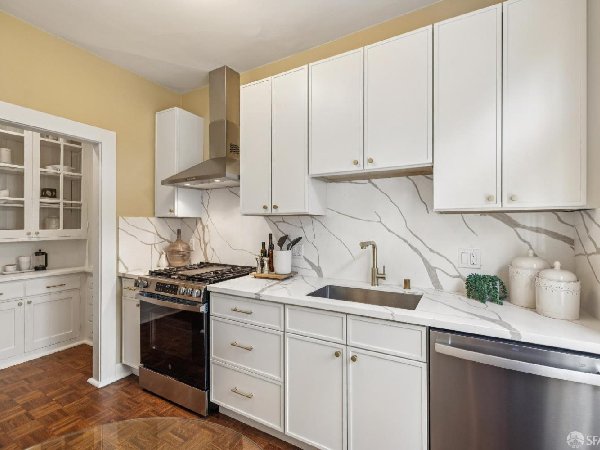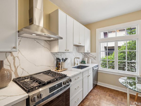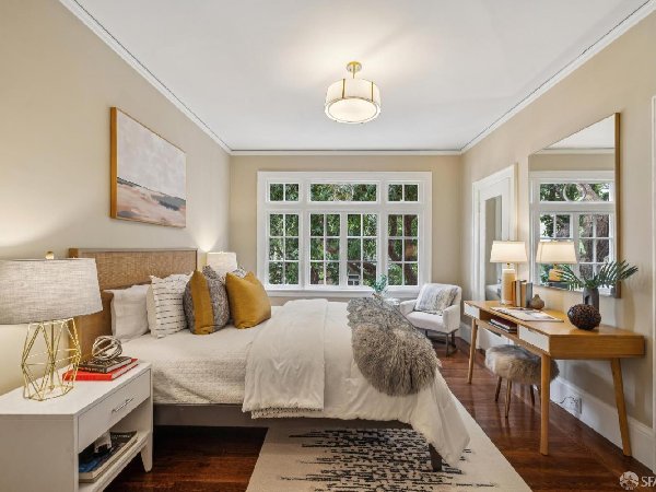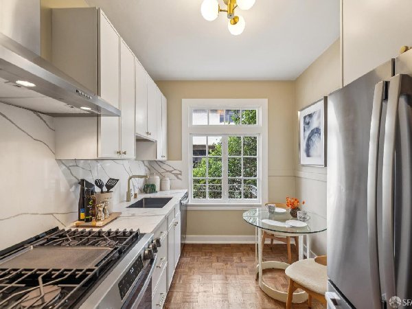 这座位于1919年太平洋高地的优雅两居室公寓,配备停车场,融合了经典风格与现代便利。 两间宽敞的卧室、设备齐全的浴室、宽敞的餐厅和客厅、全屋硬木地板,以及全新升级的可用餐厨房,为各种生活方式提供了舒适的生活空间。 这座住宅以永恒的建筑细节为特色,既反映了社区丰富的历史,也提供了我们一直以来珍视的所有便利设施。出色的室内布局和角落单元的位置营造出明亮且宜人的氛围,适合与他人共享,或作为城市生活的避风港。 独立的车库停车位、公共洗衣房、共享后花园和储藏空间(以及整个单元内宽敞的储物空间)使这栋拥有10户的精品建筑生活便利且轻松,同时也充满了典型的旧金山风格。 该物业位于太平洋高地的核心地带,距离阿尔塔广场和拉斐特公园仅咫尺之遥,靠近多种当地设施和社区,包括沿菲尔莫尔街的购物和餐饮、公共交通(1加州和22个菲尔莫尔市政站距离建筑仅几步)、一家世界级医院(CMPC)以及多所学校和图书馆。 除了优越的地理位置和实用性特点外,这座房子还拥有经典且悦目的室内布局、绝佳的城市景观和丰富的魅力。
