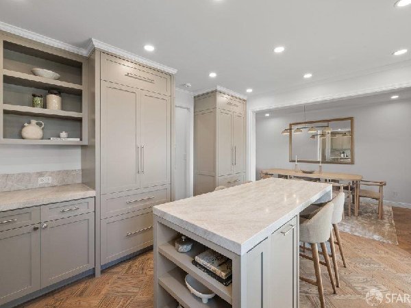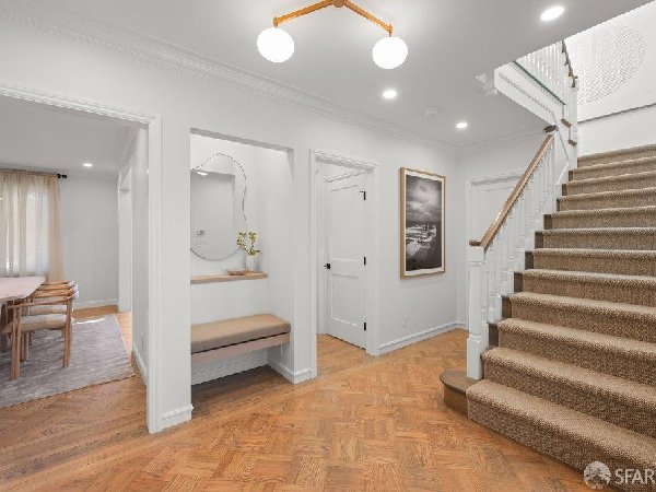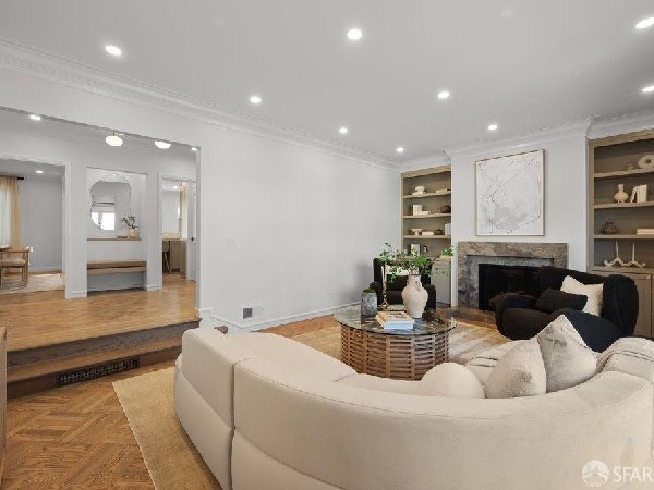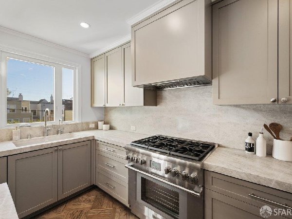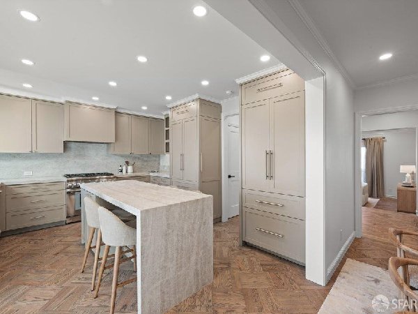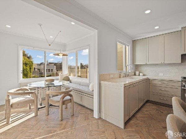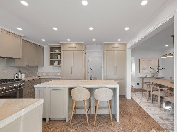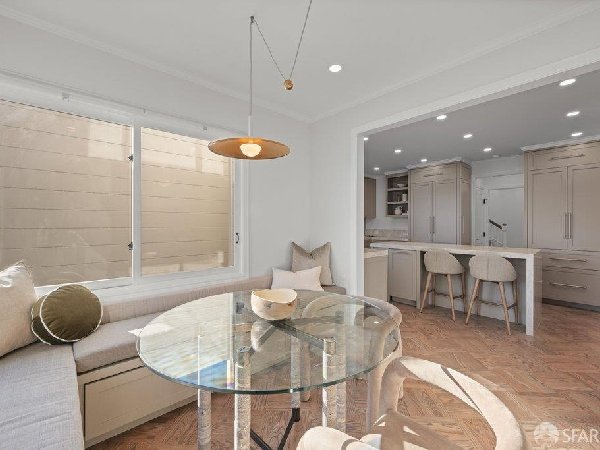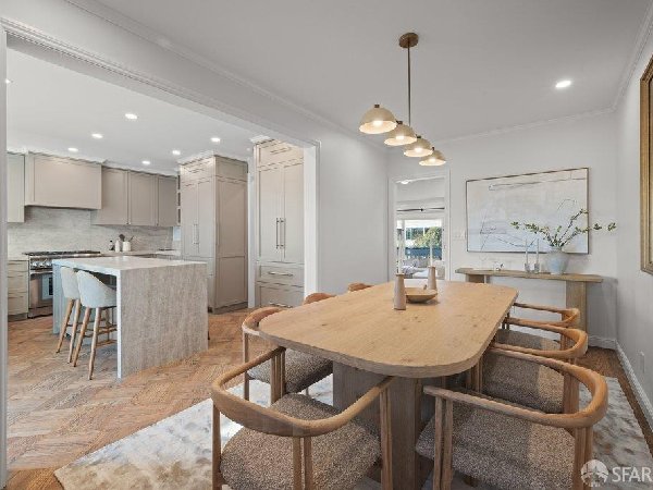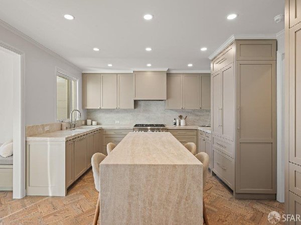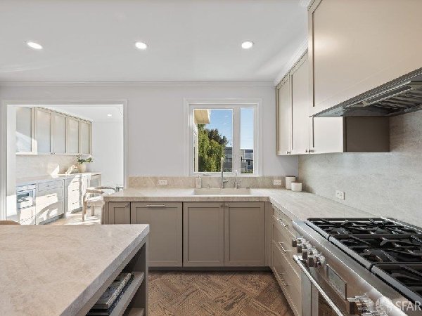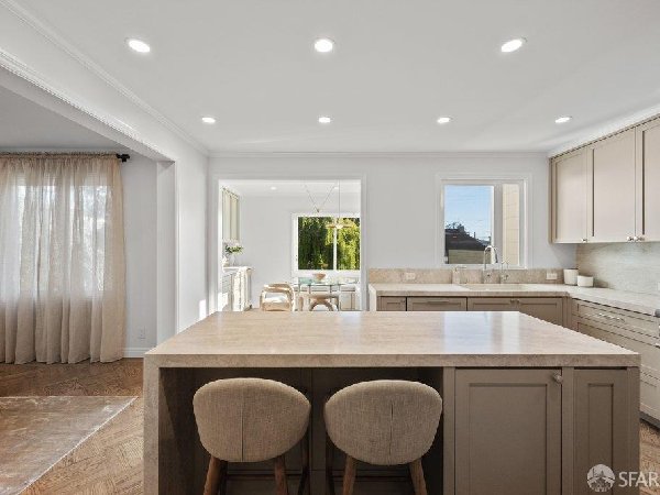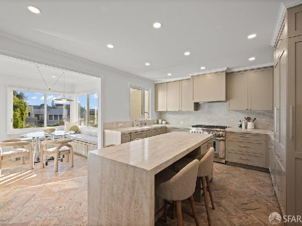 这座部分独立住宅坐落在Sea Cliff一条备受追捧的树木成荫街道上,经过重新构想,采用精致的室内建筑、精心策划的饰面以及温暖而高雅的细节。主层是一个温馨的门厅,主层提供宽敞的聚会空间,周围陈列着定制橱柜和木作。明亮的客厅配有石质壁炉,与餐厅和焕然一新的厨房无缝衔接,厨房兼顾日常生活与招待。厨房配备泰姬陵式台面和后挡板,带座椅的瀑布岛,Thermador面板专用电器,定制LED灯带和冰球灯,内置早餐角落带长椅座椅,以及带储物空间的干吧台。楼上新装的天窗引入充足的自然光,勾勒出私人空间,包括三间卧室和一个适合作为家庭办公室、客房或游戏室的大阳光房。主套房可眺望林肯公园高尔夫球场、石材燃气壁炉、宽敞的更衣区以及带有雪松内衬橱柜的大型定制衣橱。主浴室配备加热地板、独立浸浴浴缸、设计师瓷砖选择以及分层可调光照明。下层提供灵活的开放空间,铺设环氧地板,设有带石英岩台面和葡萄酒冰箱的酒窖,带水槽和储物空间的洗衣房,以及狗洗车站。户外设施包括专业景观和微灌溉、带有氛围灯的私人后院、超宽的系统铺路车道、自动风向车库门、节能定制的窗帘和门,预布线用于电动车充电,以及新的暖通空调系统。靠近凯瑟琳·德尔玛·伯克学校,距离兰兹恩、中国海滩、贝克海滩和林肯公园高尔夫球场仅几个街区。距离当地餐馆、精品店和社区设施仅数分钟车程,这座住宅为旧金山最具标志性的社区之一提供了通往旧金山最著名的海岸和公园设施的卓越便利。
