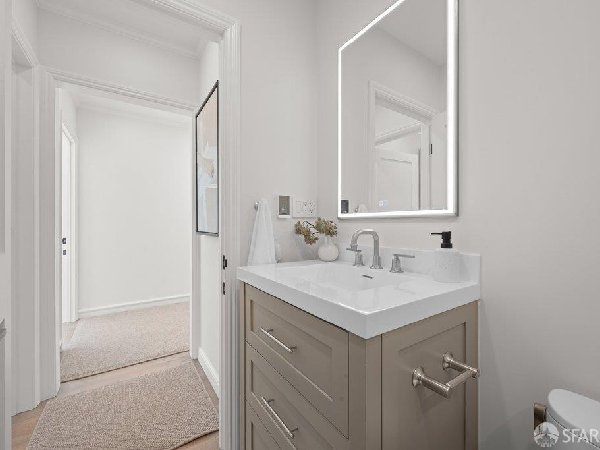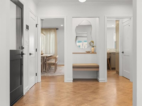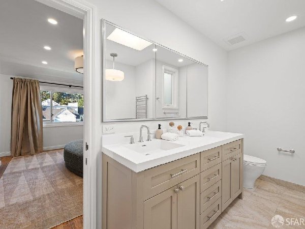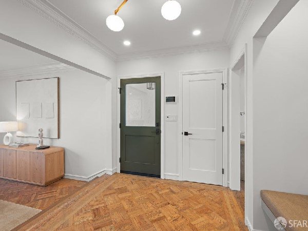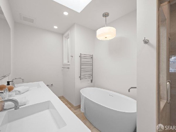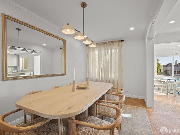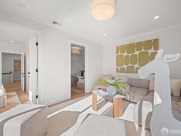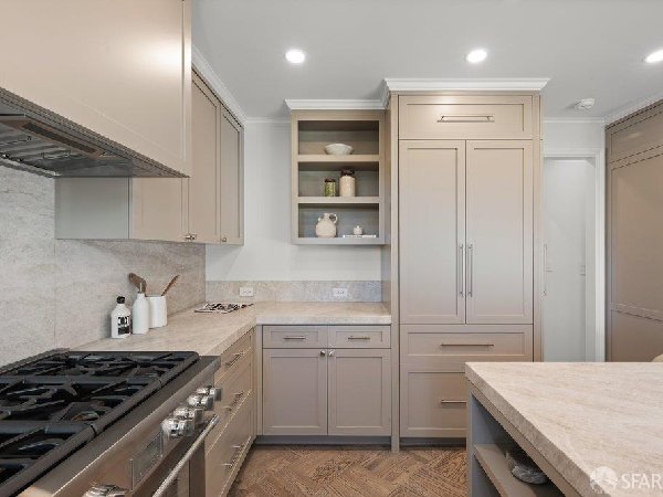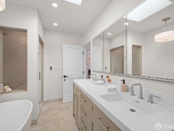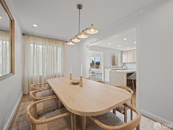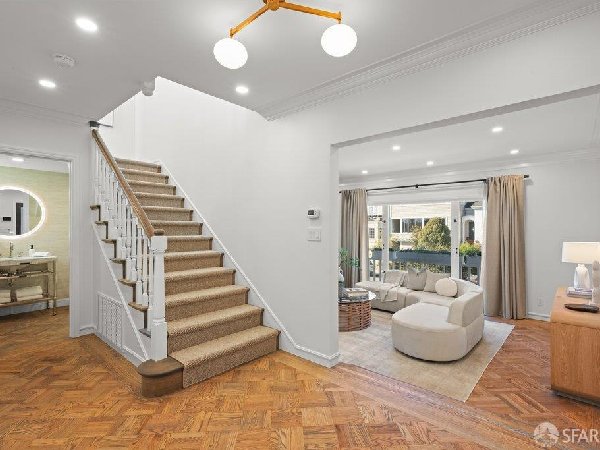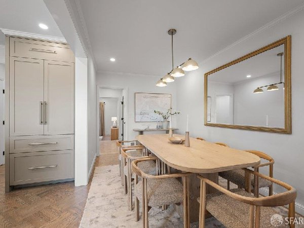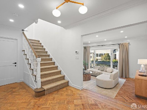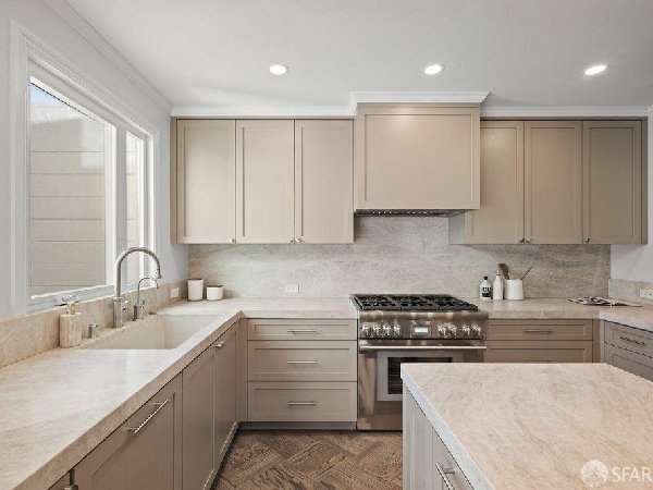 这座部分独立住宅坐落在Sea Cliff一条备受追捧的树木成荫街道上,经过重新构想,采用精致的室内建筑、精心策划的饰面以及温暖而高雅的细节。主层是一个温馨的门厅,主层提供宽敞的聚会空间,周围陈列着定制橱柜和木作。明亮的客厅配有石质壁炉,与餐厅和焕然一新的厨房无缝衔接,厨房兼顾日常生活与招待。厨房配备泰姬陵式台面和后挡板,带座椅的瀑布岛,Thermador面板专用电器,定制LED灯带和冰球灯,内置早餐角落带长椅座椅,以及带储物空间的干吧台。楼上新装的天窗引入充足的自然光,勾勒出私人空间,包括三间卧室和一个适合作为家庭办公室、客房或游戏室的大阳光房。主套房可眺望林肯公园高尔夫球场、石材燃气壁炉、宽敞的更衣区以及带有雪松内衬橱柜的大型定制衣橱。主浴室配备加热地板、独立浸浴浴缸、设计师瓷砖选择以及分层可调光照明。下层提供灵活的开放空间,铺设环氧地板,设有带石英岩台面和葡萄酒冰箱的酒窖,带水槽和储物空间的洗衣房,以及狗洗车站。户外设施包括专业景观和微灌溉、带有氛围灯的私人后院、超宽的系统铺路车道、自动风向车库门、节能定制的窗帘和门,预布线用于电动车充电,以及新的暖通空调系统。靠近凯瑟琳·德尔玛·伯克学校,距离兰兹恩、中国海滩、贝克海滩和林肯公园高尔夫球场仅几个街区。距离当地餐馆、精品店和社区设施仅数分钟车程,这座住宅为旧金山最具标志性的社区之一提供了通往旧金山最著名的海岸和公园设施的卓越便利。