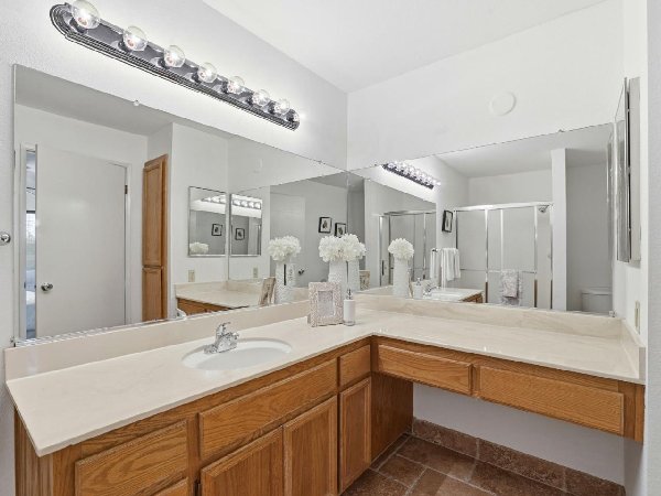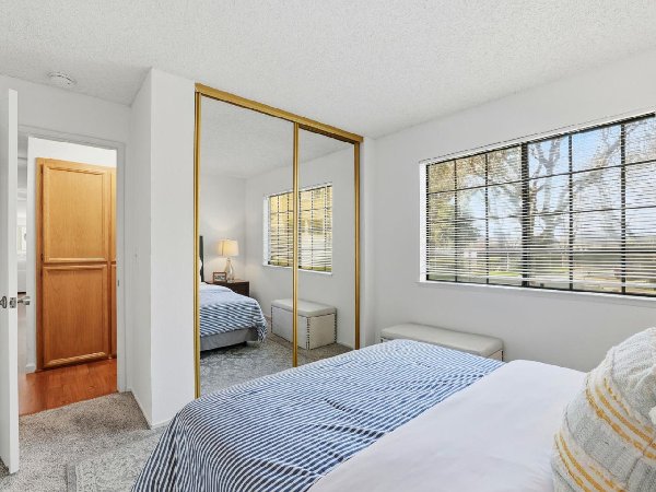 在宁静的埃尔克岭庄园,隐私与极致便利相遇!这座漂亮的角落单元宝藏是首次购房者或希望轻松搬入单层住宅的理想选择。这套新粉刷的单元,铺设时尚的层压地板,贯穿入口、走廊、宽敞的客厅和多功能卧室之一。这栋房子拥有宽敞的厨房,配有木质橱柜,完美地与温馨的起居区相连。虽然两居室提供了柔软地毯的温馨感,而两个浴室则铺设了美丽时尚的瓷砖,增添了一丝优雅。 主套房是真正的避风港,拥有宽敞的步入式衣橱和配备新设备焕然一新的浴室。每一个细节都经过精心打磨,从更新的电源插座、新的地板通风口,到优雅的入口照明。户外则有两个私人宽敞甲板,适合早晨喝咖啡或呼吸新鲜空气,享受放松。房子里有专门的洗衣房。停车非常方便,罕见的双车位安排包括一个私人车库和一个专门的车位,正对着你。距离商店、步道以及通往87号和85号公路的便捷通道仅有不远。