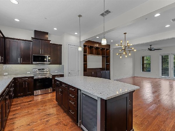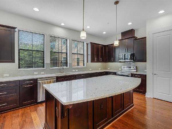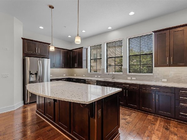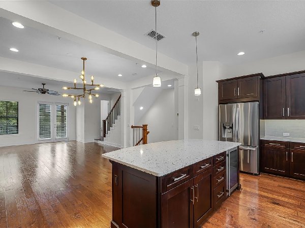 一张或多张照片被虚拟布置。一张或多张照片被虚拟布置。鲍德温公园黄金地段!欢迎来到这座优雅的大卫·威克利市住宅,完美地坐落在蓝夹克公园和鲍德温湖对面——从有顶的前廊和二楼和三楼的两个私人阳台,提供如画的景色和户外生活。走进一厅,即可入住多功能的一楼套房,配备全套浴室,适合客人或私人家庭办公室,整体采用时尚的木质瓷砖地板。美丽的坚固山核桃木楼梯和经典的锻铁栏杆引导您前往宽敞的主生活层。这座房子的核心是美食厨房,经过精心设计,配有超大石英岛台、丰富的浓缩咖啡橱柜、全新的LG电器、玻璃瓷砖挡板和内置葡萄酒冰箱。定制的干吧台和配套的浓缩咖啡柜延伸至餐厅区,营造出无缝的娱乐空间。开放式布局自然流淌进宽敞的客厅,客厅铺着华丽的山核桃木硬木地板,沐浴在超大窗户和二楼阳台的自然光中。楼上铺着带豪华软垫的豪华新地毯,带您进入私人卧室层。主套房是真正的休憩之地,拥有独立阳台、托盘式天花板、带有河石地板的步入式淋浴间的水疗浴室、花园浴缸和宽敞的步入式衣橱。次卧还配有独立套间浴室,非常适合家庭或宾客使用。这一层的大型洗衣房增加了日常便利。享受通往鲍德温公园村中心、商店、餐饮、社区游泳池、健身中心、狗公园以及数英里风景步道的绝佳步行便利。这座卓越的联排别墅融合了奢华、地理位置和低维护的生活,位于奥兰多最受欢迎的社区之一。这套联排别墅经过细致维护和更新,配备了新电器、新室内油漆、楼上新地毯和新的暖通空调系统。