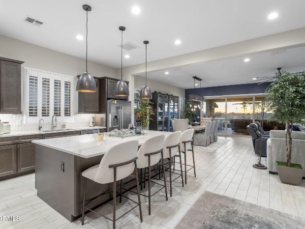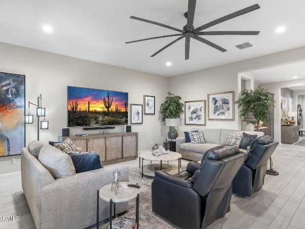 这座可入住的住宅隐匿于天堂岭封闭社区内,坐落于社区最受欢迎的位置之一,背靠开放空间,拥有开阔的视野和绝不会让人失望的日落。这样的房子并不常见,尤其是在这个注重隐私和景观的黄金地段。这个受欢迎的户型提供三间卧室、三间浴室,以及专用办公室和灵活的额外空间,非常适合家庭健身房、游戏室或第二工作区。10英尺高的天花板和明亮开放的布局让住宅显得宽敞而温馨,而厨师厨房配有超大石英岛台,与客厅无缝衔接,既适合日常生活,也适合招待宾客。在后院,可以欣赏宁静的开放景观、美丽的日落,以及户外烧烤和扩展的露台。社区本身设有游泳池、水疗中心、游乐场,以及带门禁的步行和骑行步道,增添了轻松、低维护的生活方式。所有这些都距离101号公路、基尔兰、斯科茨代尔区、沙漠岭、Whole Foods、Life Time Fitness、梅奥诊所以及该地区一些最棒的购物和餐饮场所仅几分钟车程。这是天堂岭最受追捧的户型之一,地点极具特色,正准备迎接新篇章。