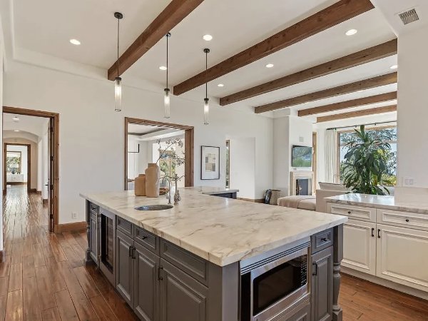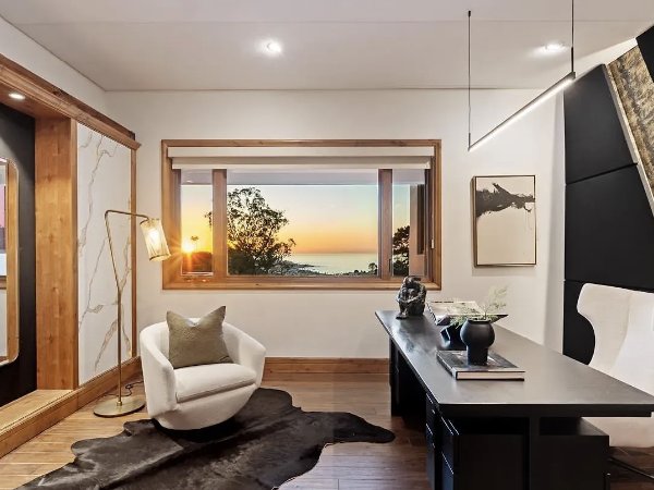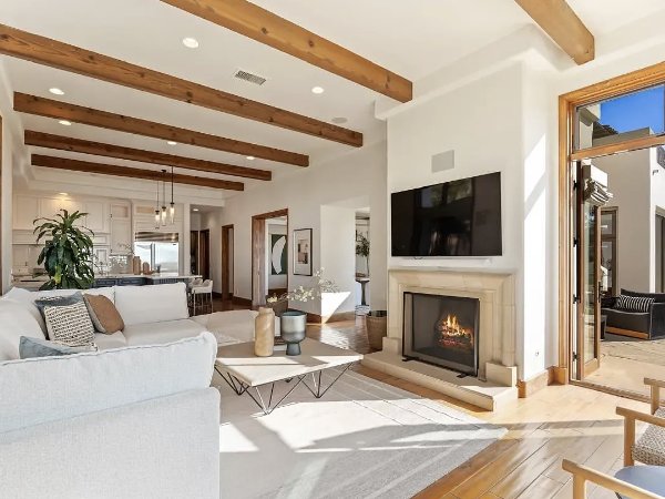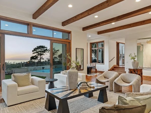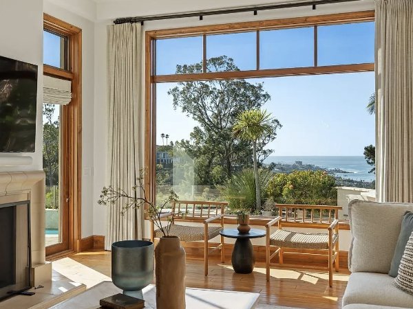阳光透过宽敞的西向窗户洒进来,勾勒出峡谷中令人叹为观止的景色,望向太平洋和远处闪烁的晚灯。多个阳台和精心设计的户外娱乐区将居住体验延伸到户外,捕捉到日落、海风和无可置疑的宁静氛围。