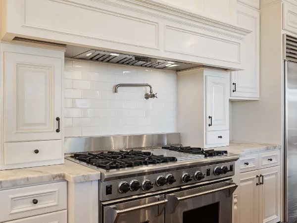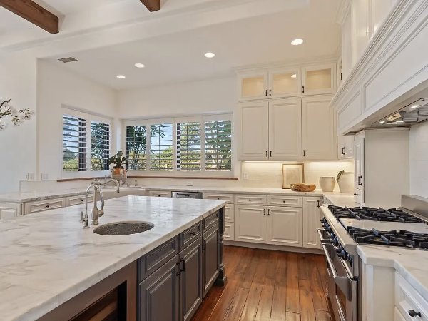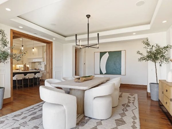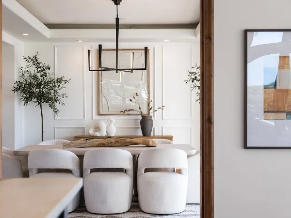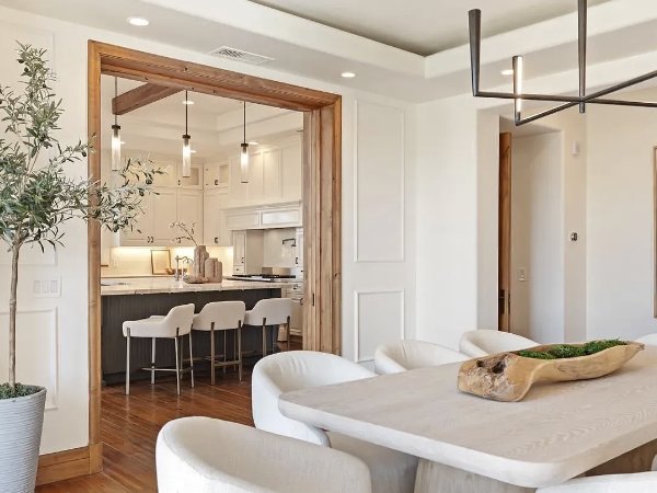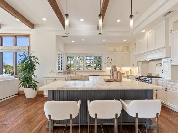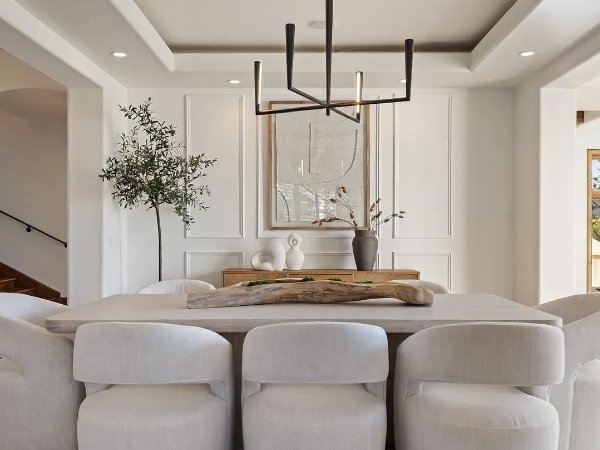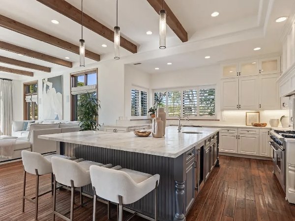 这座住宅以新建建筑的自信建造,将简洁的线条与温暖的有机材料平衡。磨刀加尔各答大理石台面、仿旧胡桃木地板、石灰石壁炉、定制皇冠线条和拱形天花板,营造出精心策划、建筑感十足且轻松奢华的室内空间。不锈钢电器和精心设计的细节为现代感带来锋芒,而经典的地中海元素则增添了深度和持久感。