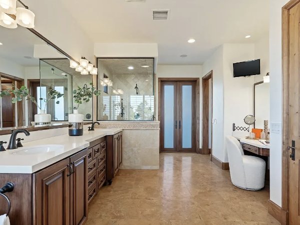 设施既令人印象深刻又罕见:付费安装太阳能和太阳能加热泳池、内置烧烤架、三车车库、人造草坪,以及设计低维护、方便上锁即走的景观规划。室内配备如蒸汽淋浴和酒柜在内的水疗奢华,将日常生活提升为度假风格体验。