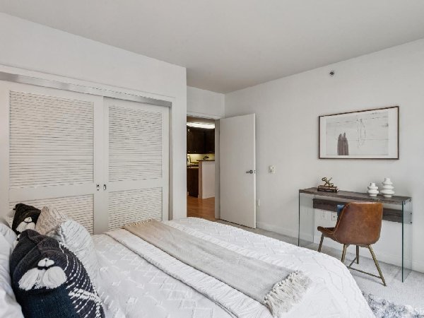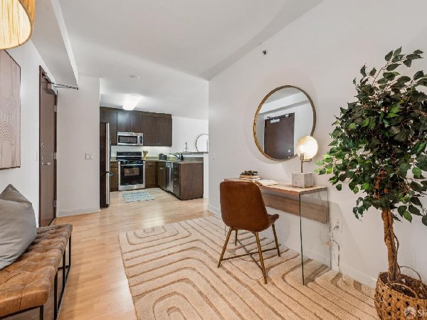 现代曼哈顿风格的 1 卧室 + 大书房/办公室 1 浴室,自然光线透过大墙窗。开放式住宅包括宽敞的起居/用餐区、带花岗岩台面和不锈钢器具的美食厨房、带充足壁橱的超大卧室和豪华浴室。单元内洗衣房、硬木地板、定制窗帘和照明。199 New Montgomery 是一座豪华精品建筑,位于旧金山蓬勃发展的博物馆区,在美丽的大堂设有 24 小时门卫、带家具的 360 度全景屋顶甲板、两个烧烤炉和一个火坑。住在旧金山芳草地文化区的中心地带。到处走走,金融区,联合广场,现代艺术博物馆,甲骨文公园,新的Transbay交通中心和公园,芳草地花园,内河码头海滨,公共交通和Cal-Train。