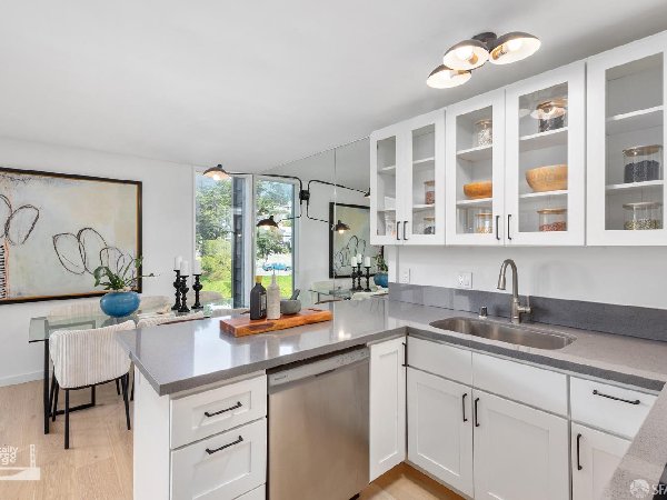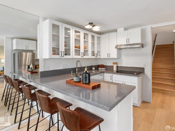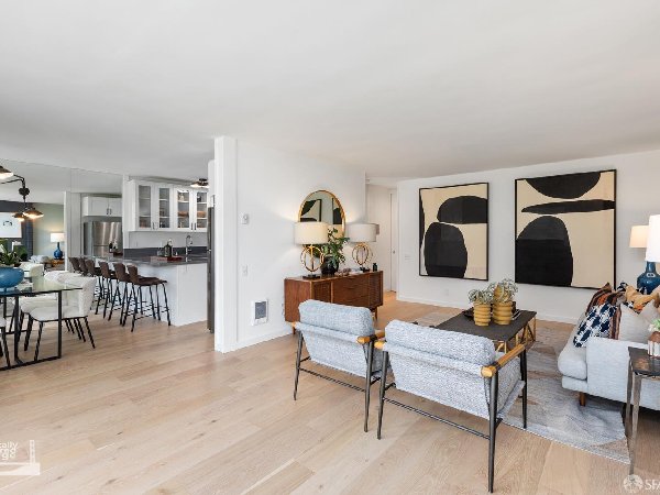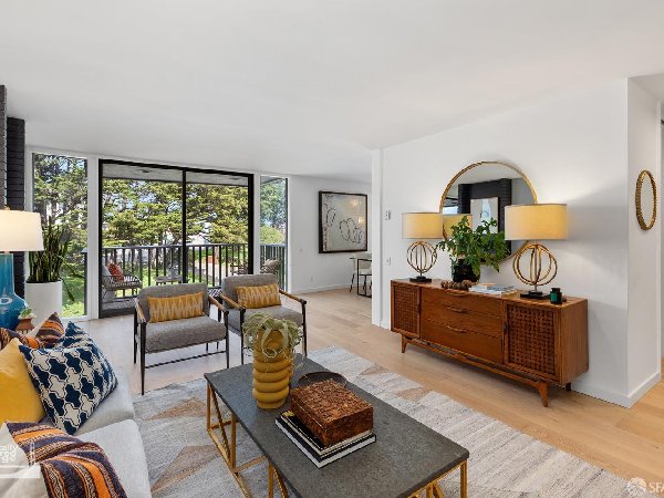 5004 Diamond Heights Boulevard是一座智能且精致的顶层双层公寓——真正的中世纪现代建筑。这是沿山坡排列的28栋住宅群中最大的之一,这些住宅组成了红岩业主协会I。这座顶层B级联排别墅面积近1700平方英尺,气势磅礴!配备不少于4间卧室、2.5个浴室、2车停车场、2个户外露台和产权储藏室。 精致的平面布局实现了功能优雅的分离,四间卧室均位于上层,厨房、客厅和餐厅位于下层。落地窗为每个房间注入自然光,内外无缝连接。钻石高地围绕三座山丘(金矿山、红岩山和比利山羊山)组织,在旧金山的社区中独树一帜,能够与城市整体保持联系,同时依然是城市的一部分。请观看媒体标签下的视频。