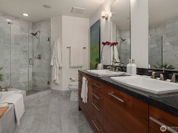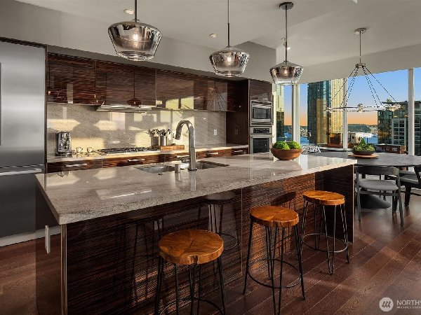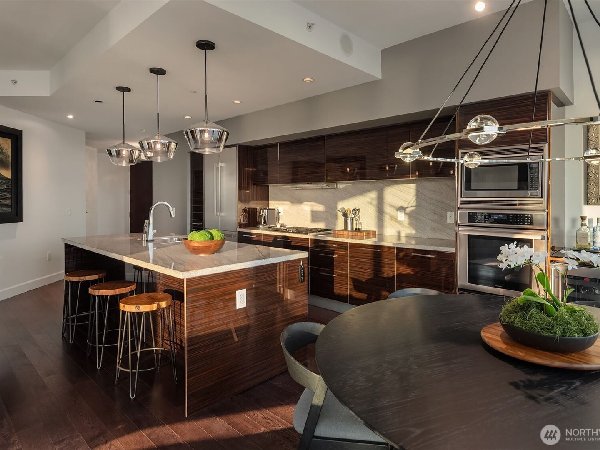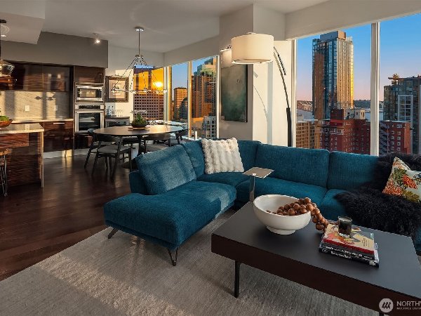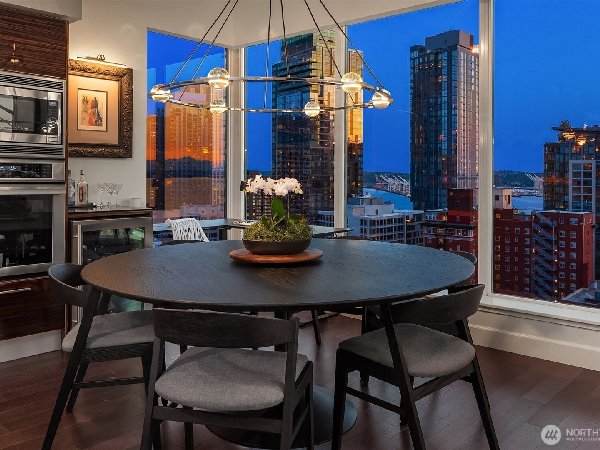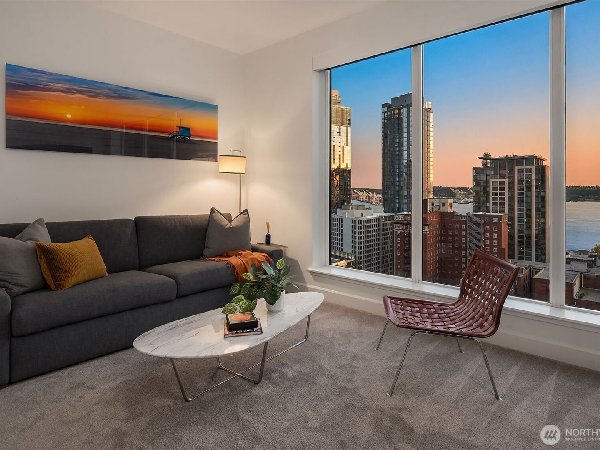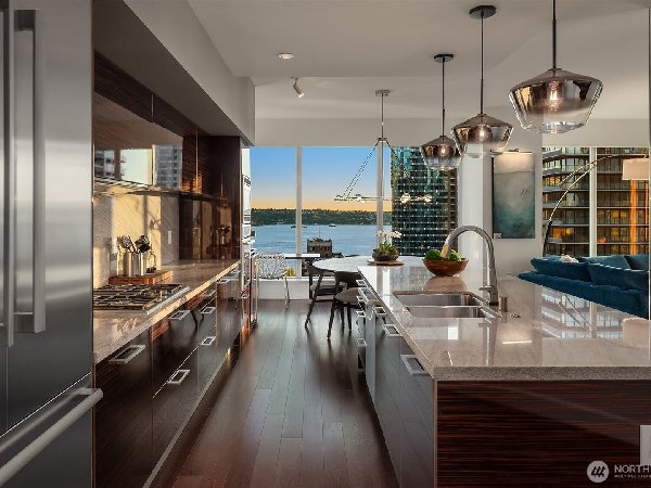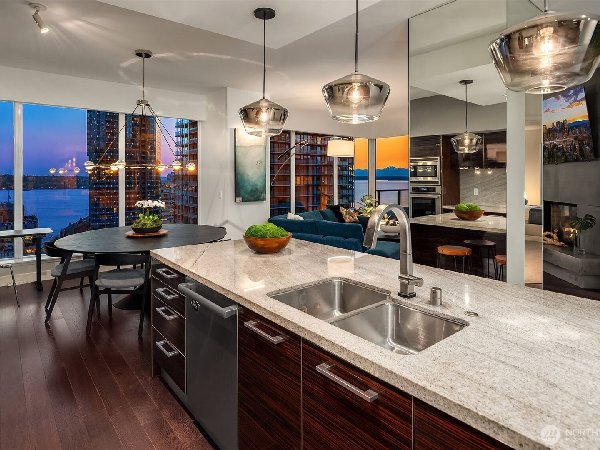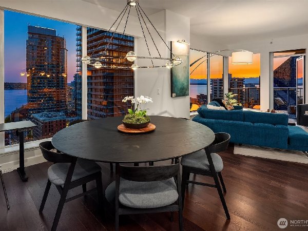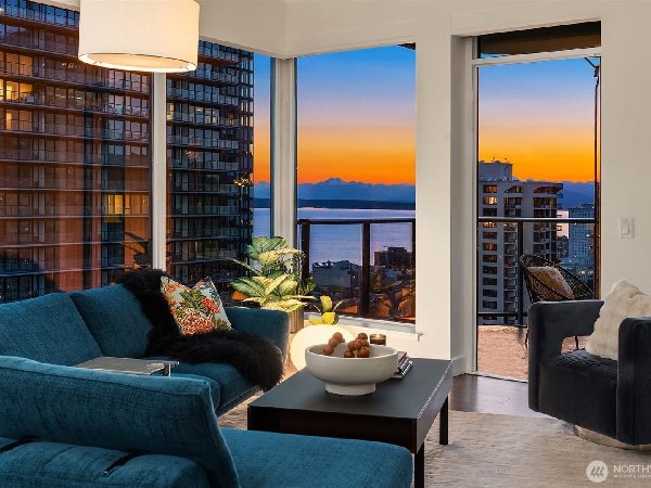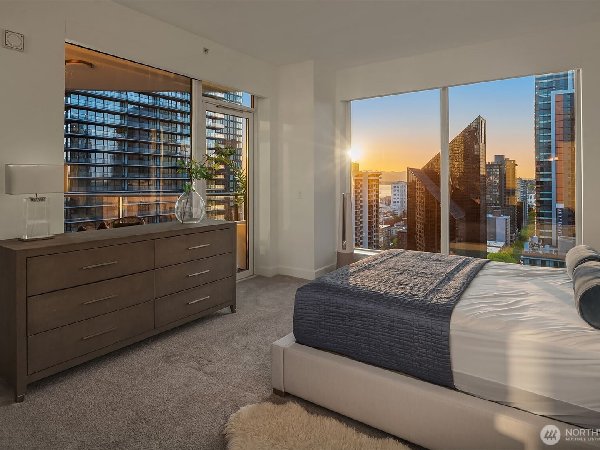 欢迎来到埃斯卡拉,这里西雅图市中心如活生生的明信片般展开在你脚下。Residence 2202是一栋罕见的角型2BD、2BA住宅,提供1,607平方英尺的高架生活空间。这是少数几栋拥有私人电梯前厅的住宅之一,电梯直接通向你的门厅——没有走廊,没有路过的邻居,只有隐私和视野。 落地窗环绕着开放的起居空间,捕捉西雅图天际线、埃利奥特湾、普吉特海湾和奥运会的壮丽景色。双面燃气固定设施连接起居区与主套房,宽敞的角落露台为难忘的日落营造氛围。时尚的厨房设计兼顾日常生活和娱乐,主套房则像精品酒店度假地,拥有水疗风格的浴缸和无缝的室内外流动。2个安全停车位和一个高级室内储物单元为公寓生活增添了便利。埃斯卡拉提供无与伦比的度假级别设施,包括24小时礼宾服务、带游泳池的健身中心、瑜伽工作室、水疗设施、带私人餐厅的葡萄酒洞、剧院、露天露台、狗狗活动区等。步行评分为99,距离派克市场、亚马逊和Microsoft接驳、单轨列车和轻轨(东区预计2026年4月扩建),以及几分钟路程即可到达圣路易斯大学。这里被Expedia、Oracle、Meta、Apple等主要雇主包围,这是一种轻松自在的城市生活,拥有无与伦比的连接。这不仅仅是公寓——更是城市的前排座位。