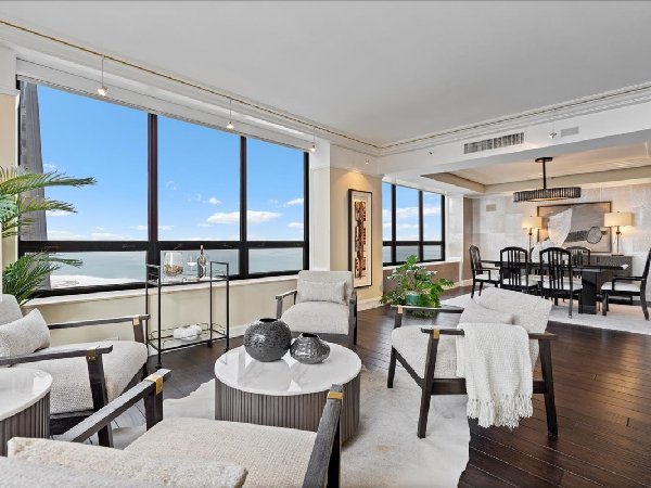 欢迎来到这座经过全面改造的精致住宅,位于 48 层西北角,可欣赏密歇根湖和芝加哥标志性天际线的全景。这座非凡的住宅在该市最受欢迎的地址之一提供奢华的生活。该卖家与 Dewindt Corp 合作,不遗余力地策划了完美的家空间。当客人进入时,他们会被欢迎进入宽敞的起居和用餐区,每个角落都沐浴在大窗户的自然光线中,并配有电动遮阳帘。美食厨房是厨师的梦想,拥有顶级电器、定制橱柜和时尚的台面。带有额外冰箱的储藏室是厨房的额外好处。沿着走廊走是大型主套房,提供带定制内置插件的宁静休憩之所、超大步入式衣橱以及带双梳妆台和浸泡浴缸的水疗式浴室。第二间卧室配有集成储藏室和连接浴室。居民还可以享受丽思卡尔顿酒店提供的世界级设施,包括礼宾服务、健身中心、室内游泳池、水疗中心和精致的餐饮场所,仅几步之遥。居民及其客人可选择现场代客泊车或自助泊车。在这个非凡的家中体验芝加哥的精华。