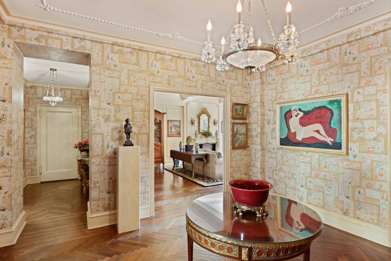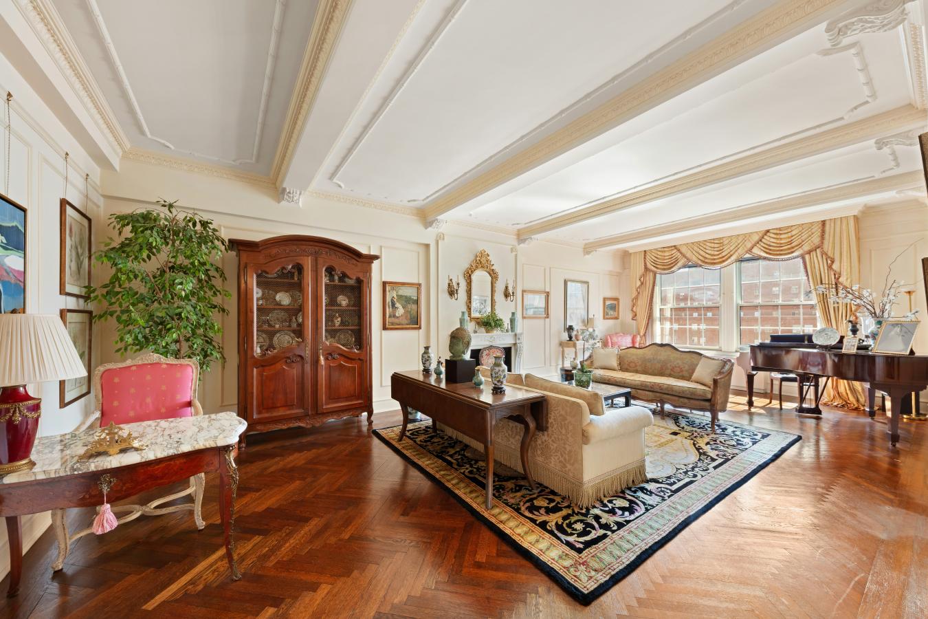 这座拥有九个房间、三卫半的宽敞住宅,位于885 Park Avenue,12B大厦,充满战前的优雅与魅力,既能容纳高雅的大型娱乐,也能提供安静的雅致与舒适,适合日常生活。12B公寓坐落在公园大道旁,树成行的78街高处,几间房间朝南,阳光充足,城市景观开阔。一个半私人的平台通向入口大厅和方形画廊,画廊正好展现了公寓优雅的布局。客厅长近30英尺,天花板不到10英尺,原装橡木人字形地板和燃木壁炉。毗邻的图书馆(可轻松改建为第四卧室)设有定制内置书架、时尚的嵌入式吧台和大型步入式衣橱。图书馆对面是一个极为宽敞的正式餐厅,两侧是红木和蚀刻玻璃门。毗邻的带窗厨房用餐空间宽敞,可容纳多种布局,储物和座椅空间充足。厨房旁有两个前员工休息室,一个现在被改为带全尺寸洗衣机和通风烘干机的洗衣房,另一个作为家庭办公室,中间是翻新的半浴室。私人住宅区由三间卧室组成,均面积宽敞,天花板高,衣橱充足。主卧采用南向采光,设有独立前厅和带带窗户的大理石全套卫浴。885公园大道是一家顶级的全方位合作社,由著名的战前建筑师施瓦茨和格罗斯于1927年设计和建造。该建筑设有大型翻新健身中心、常驻经理、细心的员工,并且对宠物友好。公寓内有私人储物转让。允许50%的融资,购买者需缴纳3%的翻转税。