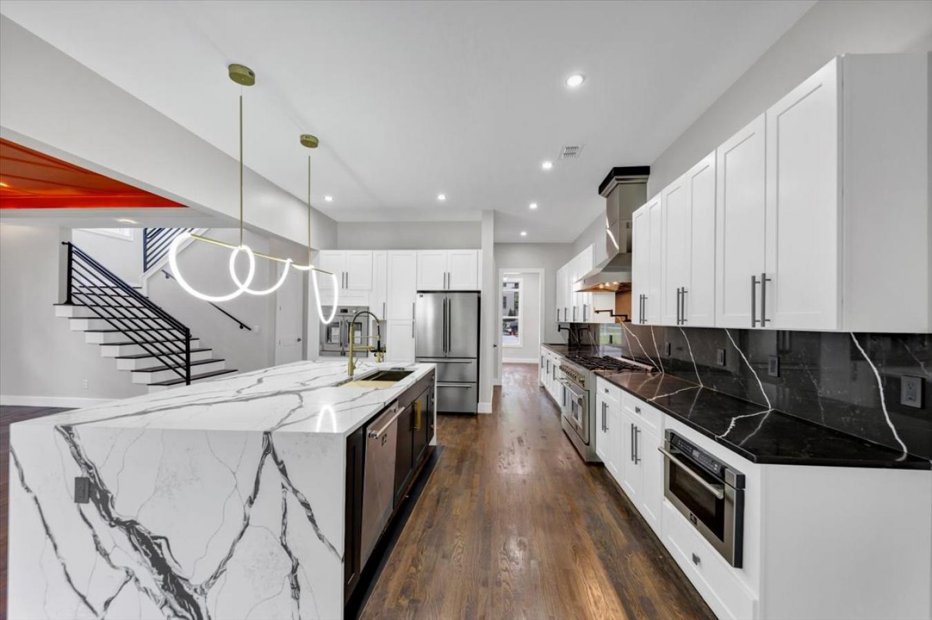 在这座由 Khari Custom Homes 定制的全新现代农舍中步入完美的现代奢华,采用智能家居技术和高档饰面精心设计。这座独一无二的住宅坐落在一个没有 HOA 的显眼角落地段,在亚特兰大最具活力和交通最紧密的地点之一提供近 3,560 平方英尺的精致生活,距离 BeltLine、梅赛德斯-奔驰体育场、哈茨菲尔德-杰克逊国际机场、公共图书馆和高尔夫球场仅几分钟路程。这座精致的住宅拥有 5 间卧室、4 间设施齐全的浴室和 1 间化妆间,以及一间灵活的奖励/媒体室,可用作第 6 间卧室、家庭影院或办公室。享受三间主人套房的罕见奢华——一间位于主层,两间位于楼上,每间均提供私人水疗风格浴室和超大步入式衣柜,包括主套房中的大型定制加州风格衣柜。主层高耸的 10 英尺天花板和开放式平面图带来充足的自然光线。两层楼的门厅通向正式的起居/办公空间和优雅的餐厅。厨师的厨房是真正的亮点,配有智能电器、石英台面、引人注目的岛台、LED 橱柜下照明、步入式储藏室以及大胆的黑色和金色装饰——所有这些都无缝地流入家庭活动室,配有舒适的壁炉和储备室,可俯瞰带顶棚的后廊和带凉棚和充足娱乐空间的围栏后院绿洲。其他功能包括:整个区域铺有胡桃木硬木地板、两层洗衣房、设计师灯具和饰面、8 英尺高的室内门、具有智能功能的安全系统、用于室内/室外生活的凸起后廊 + 露台。所有这些都位于 I-20、MARTA、亚特兰大市中心的娱乐和餐饮场所以及佐治亚水族馆、可口可乐博物馆和石山公园等顶级文化目的地的快速交通位置。