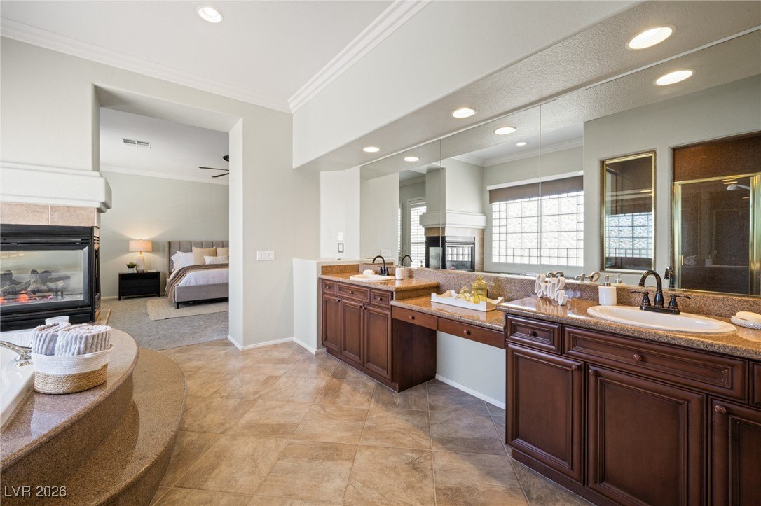 这座优雅的4043平方英尺住宅位于高地的守卫门禁区“山麓”,提供隐私和度假式生活。主屋有4栋卧室和4.5栋公寓,还有两栋独立小屋(共778平方英尺)——一个在前面,一个在后面——各自有自己的私人房间。宁静的前院和攀爬藤蔓定下了基调。内部设有开放式客厅、餐厅、书房和早餐空间,空间流畅无间,特色是醒目的铁木楼梯,所有楼梯都与后院视觉相连。楼上是带有绝佳定制衣橱的大主主楼,通向全长阳台和宽敞的水疗中心。此外,还能找到3间宽敞卧室(其中一间是JR套房),每间都带浴室,阁楼区设有朱丽叶阳台。度假村风格的户外绿洲是全场亮点,设有泳池、水疗中心、瀑布、火坑和为大型娱乐设计的宽敞露台。这是南高地最受追捧的社区之一中难得的机会。