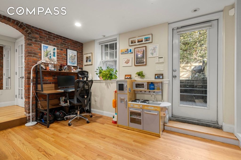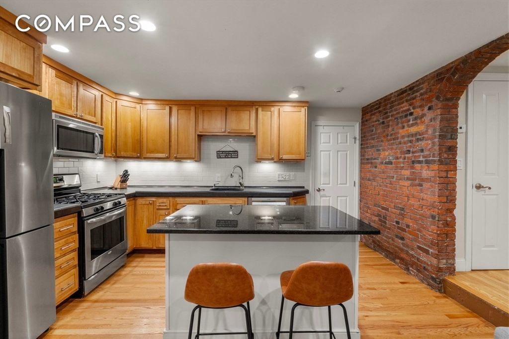 这是一座经过精美翻新的花园层住宅,位于南区最受欢迎的街道之一。这个迷人的空间俯瞰着一个安静的私人露台,铺设了新铺的铺路石和阳光充足、景观和围栏的后院,供这套公寓和另一单元使用。室内,房屋充满个性,裸露的砖墙和闪亮的翻新硬木地板相得益彰。灵活的布局可选择两间卧室,其中一间则可轻松用作家庭办公室。开放式客厅与餐厅无缝衔接,厨房配备了不锈钢电器、红桦木橱柜、宽敞的岛台、燃气炉和浇筑混凝土台面——现代感与永恒魅力。水疗风格浴室配备了按摩浴缸、辐射加热地板和豪华装修,配备了全新的洗衣机和烘干机,适合放松身心。这套公寓兼具魅力与便利,距离充满活力的南区著名餐厅和咖啡馆仅几步之遥。