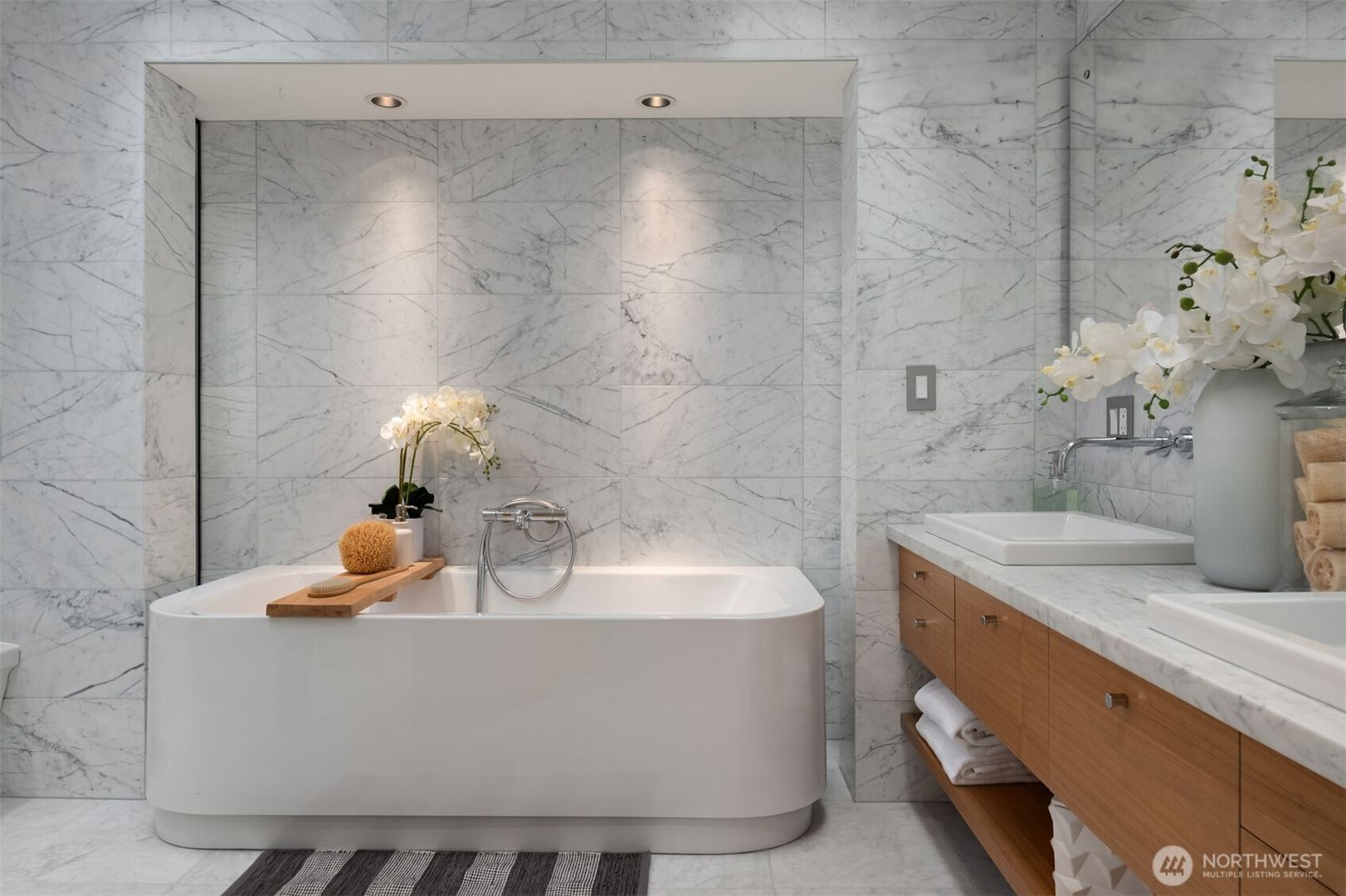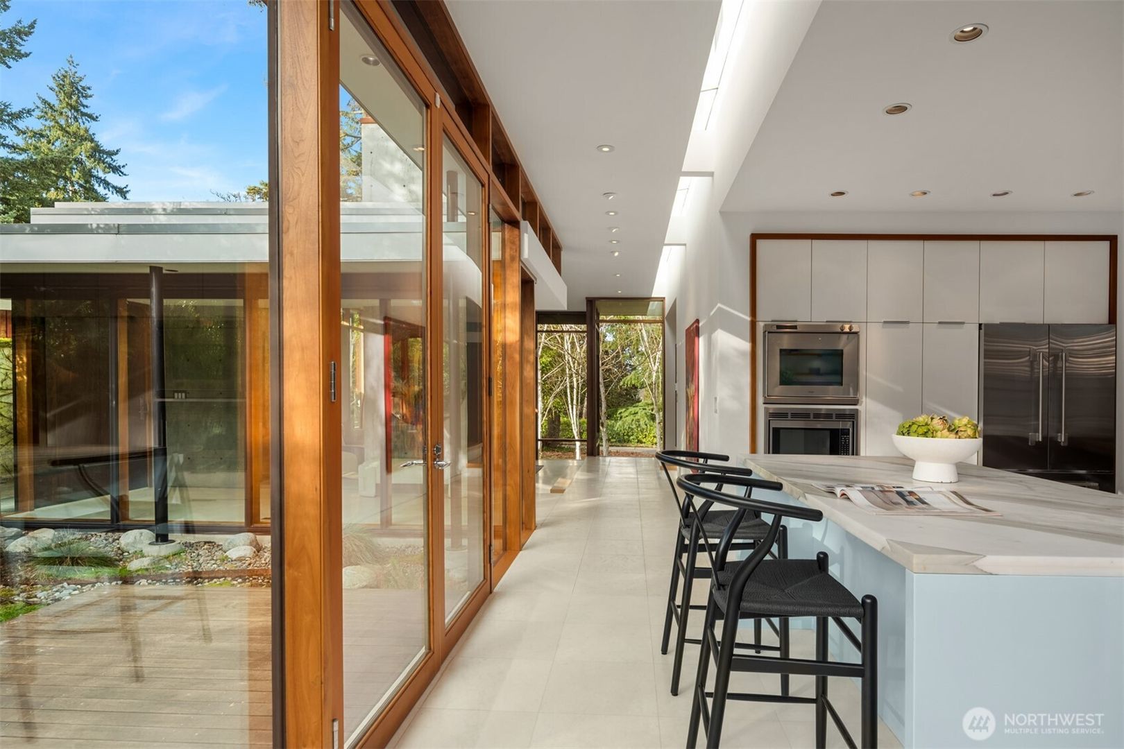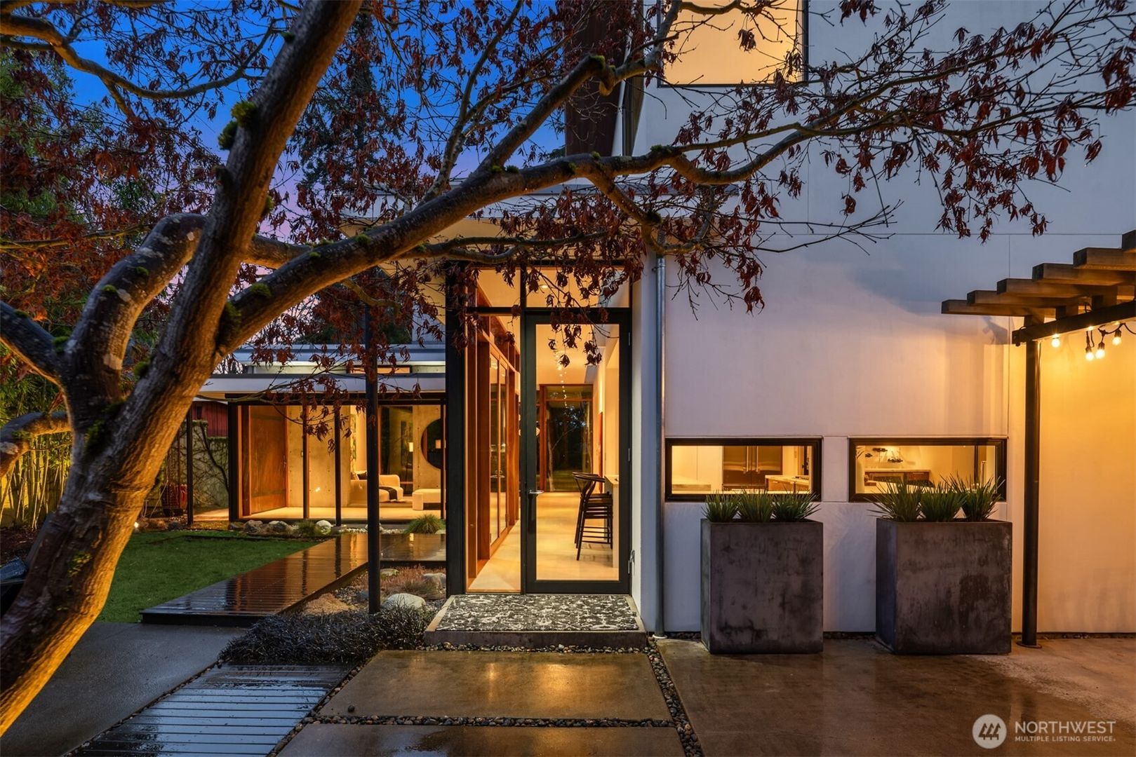 玻璃画廊屋是太平洋西北地区罕见的奢华度假胜地——街头经典,内部则令人瞠目结舌的现代风貌。距离占地230英亩的华盛顿公园植物园仅几步之遥,这座雕塑感十足、设计前卫的住宅融合了温暖而精致的极简主义,每一条线条都显得刻意,每一个视角都显得精心策划。由著名太平洋西北区建筑师帕特里克·威廉·唐纳利设计,这座全定制住宅营造出画廊般的室内设计,配有切边线条、混凝土元素和高耸的玻璃墙,模糊了内外界限。沿着受日本庭园启发的小径,被成熟的桦树环绕,抵达一个戏剧性的入口——一个建筑时刻——拥有令人惊叹的道杉旋转门和明亮的石灰石地板。内部是胡桃木包裹的玻璃大片,通向一个私人庭院圣地,设有多个娱乐空间和宁静的水景。下沉式客厅以落地玻璃和雕塑感混凝土壁炉令人惊艳。带餐厅的Calacatta大理石厨房堪称展示品,将定制胡桃木橱柜与室内外无缝流动完美结合。一座悬浮的开放楼梯,顶部设有宽敞的天窗,将三层楼层都沐浴在自然光中。楼上:树冠主套房,配备水疗级别的大理石浴缸,以及第二套套间,地下层提供卧室、多媒体室和灵活空间。独立的480平方英尺马车房,设有独立出入口和电动车专用车库。这里是通勤的理想起点,方便快速到达DT西雅图和主要东区枢纽:贝尔维尤、柯克兰和雷德蒙德。