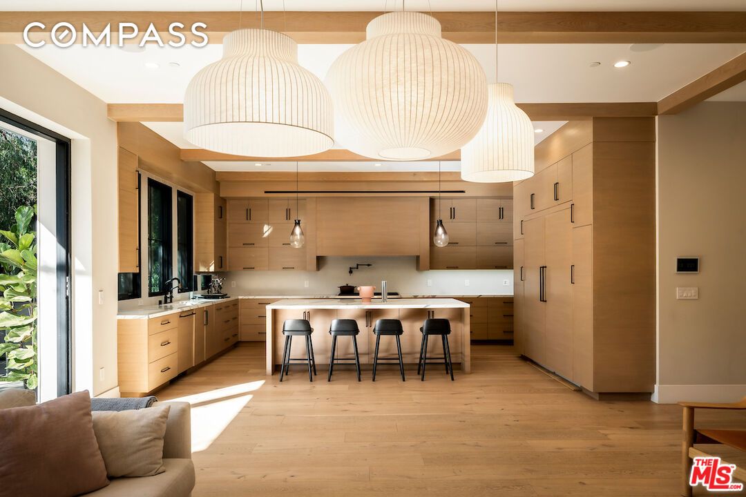 作为现代有机设计的杰出体现,这座西好莱坞住宅占地5,036平方英尺,精致且充满光线。室内设计用温暖的天然材料和简洁的建筑线条,整体营造出既精致又宜人的氛围。宽敞的推拉门打造出室内外无缝衔接,通向私人庭院和精心设计的后院,既适合放松,也能招待宾客。主厨厨房是家中的核心,配备定制台面、Sub-Zero和Wolf电器,以及设备齐全的管家储藏室。开放式厨房和家庭活动室将功能性与高雅设计相结合,非常适合亲密的夜晚或大型聚会。主套房是真正的度假胜地,由双开门引入,以高耸的天花板、宽敞的步入式衣橱和带有高级饰面的水疗风格浴缸为特色。其他亮点包括私人先进影院和完整的Control4智能家居整合,在洛杉矶最受追捧的社区之一中,提供现代便利与建筑精致。