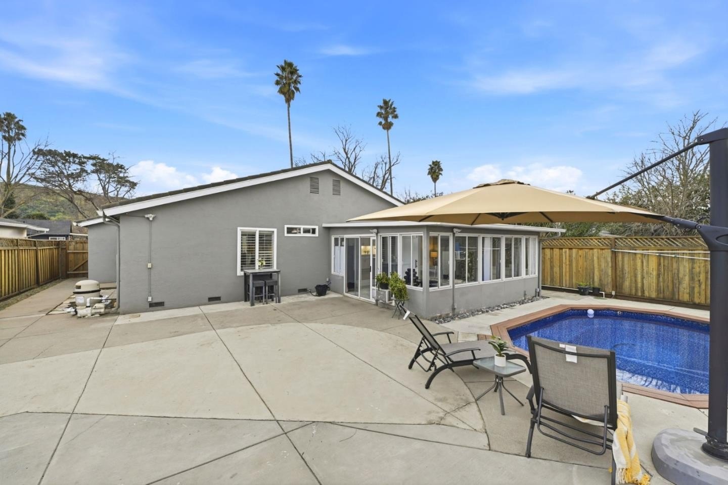 欢迎来到这座位于充满活力的圣何塞市的迷人三居室住宅。这座住宅面积达1014平方英尺,配备了经过精心更新的浴室,并配备了结合淋浴和浴缸的功能。厨房是一个令人愉悦的空间,配备了时尚的大理石台面和便捷的洗碗机,非常适合美食爱好者。在温馨的带堂食厨房享用餐食,或在独立的家庭活动室放松身心。房屋整体铺设工程木地板,既时尚又易于维护。 全年都舒适,配备中央空调和供暖。这片6000平方英尺的宽敞场地内设有一个清爽的地下泳池,适合温暖的圣何塞日子。额外的便利设施包括两车停车库,提升日常生活的便利性。这所住宅在圣何塞南部提供了一个宁静的度假地,配备了现代化设施。
