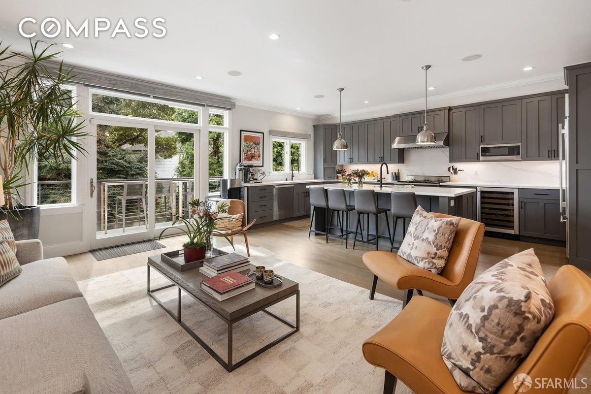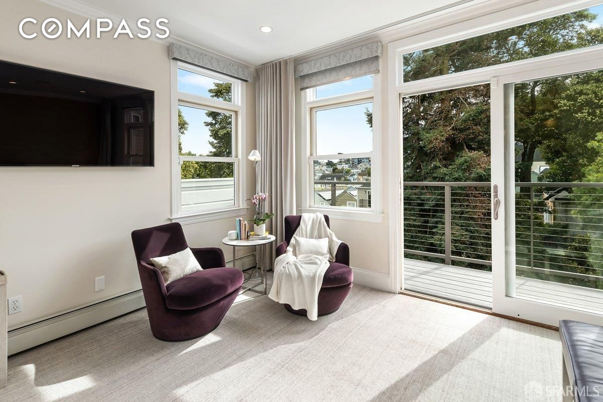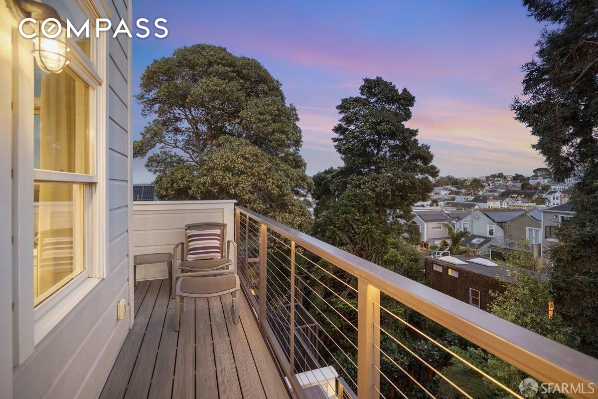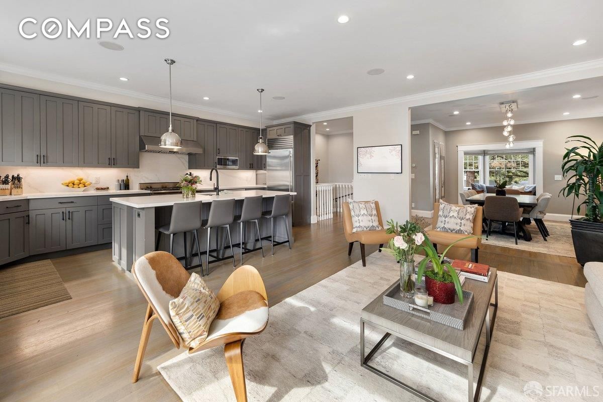位于备受追捧的Noe Valley街区的宽敞且配置良好的住宅,提供三层生活空间和多层露台,通向美丽的后院。优雅的正式入口通向一个带有煤气壁炉和凸窗的温馨客厅,俯瞰着树荫成行的街道,通向优雅的餐厅。主层通向开放式厨房和家庭活动室,设有可出去的露台和通往花园的楼梯。华丽的厨房配备了石英台面和防溅板、定制橱柜、带座椅的中央岛台,以及包括Subzero冰箱、Miele洗碗机和Wolf燃气灶在内的高端电器。推拉门打开后,可以看到朝南的露台,可以欣赏到烧烤和东湾的“藏猫猫”美景。上层朝南的主套房采光充足,设有休息区、景观甲板、步入式衣橱和双人衣橱,以及带双洗手台和淋浴的套间浴室,浴缸上方设有按摩浴缸。另外两间卧室共用一个带石英梳妆台的走廊浴室,浴缸上方有淋浴,还有洗衣房。下层包括一个宽敞的家庭活动室,通向带座位和火坑的甲板,一间带法式门的卧室和一个完整的浴室。楼梯通向一个被成熟红木树遮荫的景观花园,院子旁有草坪和独立的娱乐室或健身房。内部可通往并排的两车库和储藏空间。全屋铺设硬木地板,配备辐射供暖,阁楼尚未开发,具有膨胀潜力。地理位置优越,靠近Noe Valley游乐场、24街商店、餐饮、学校和公园。