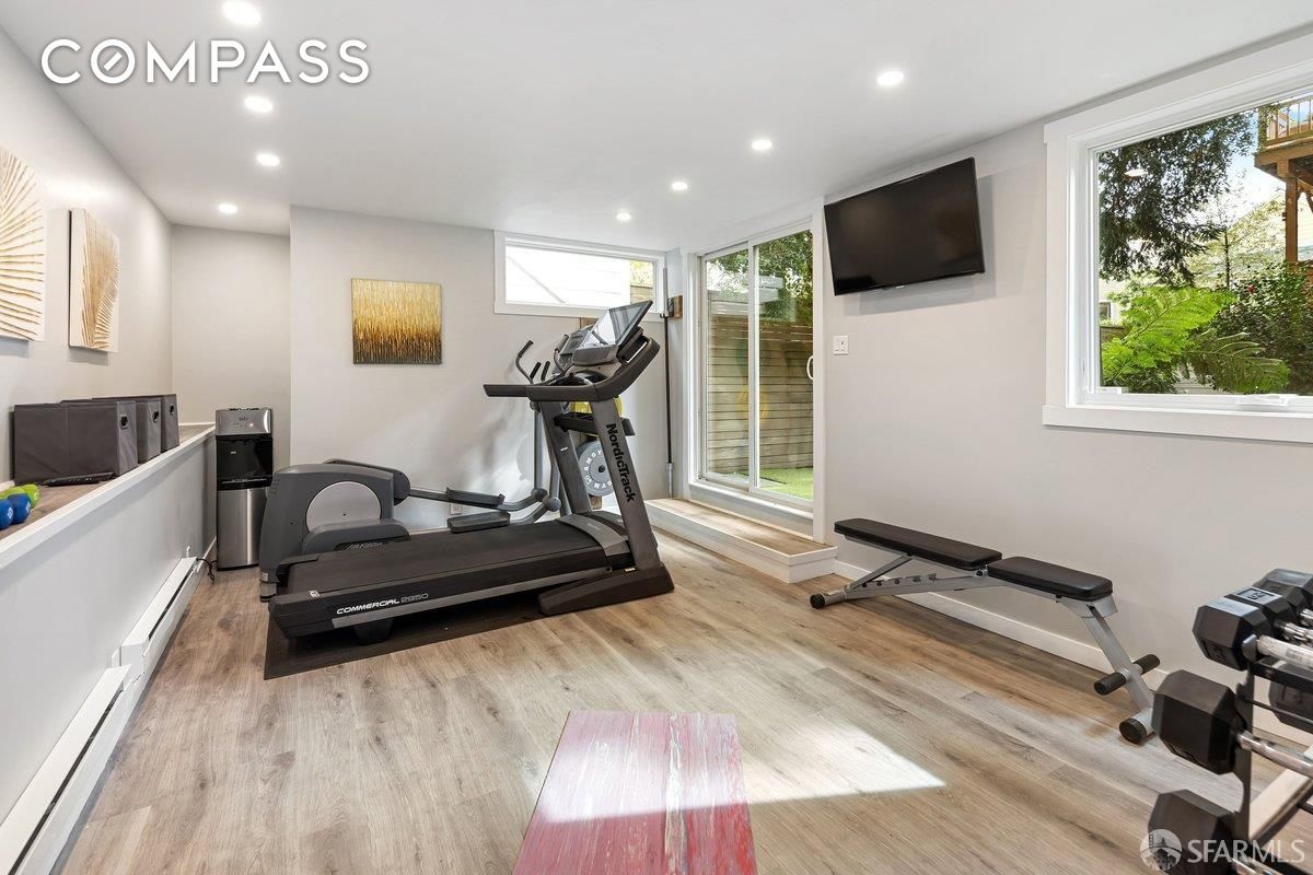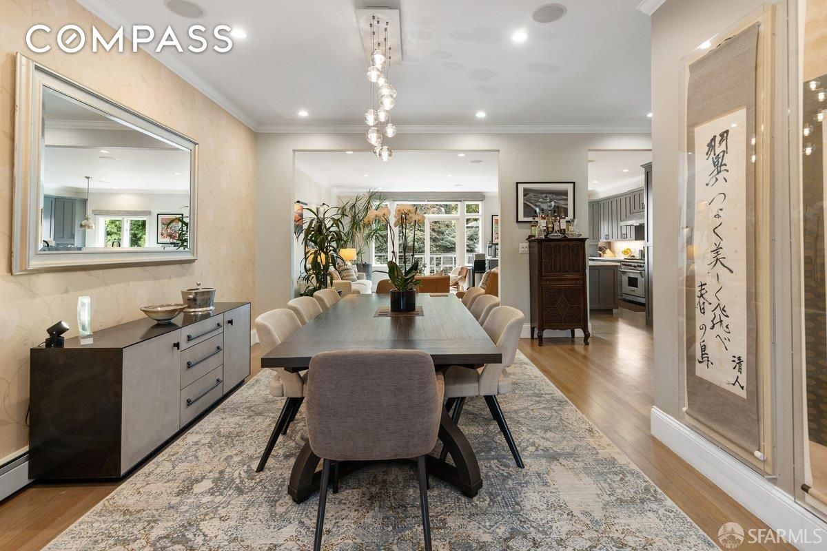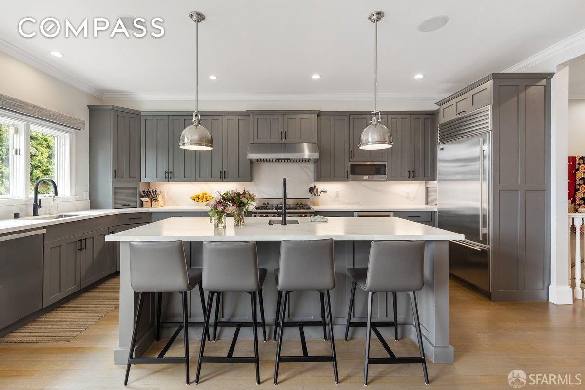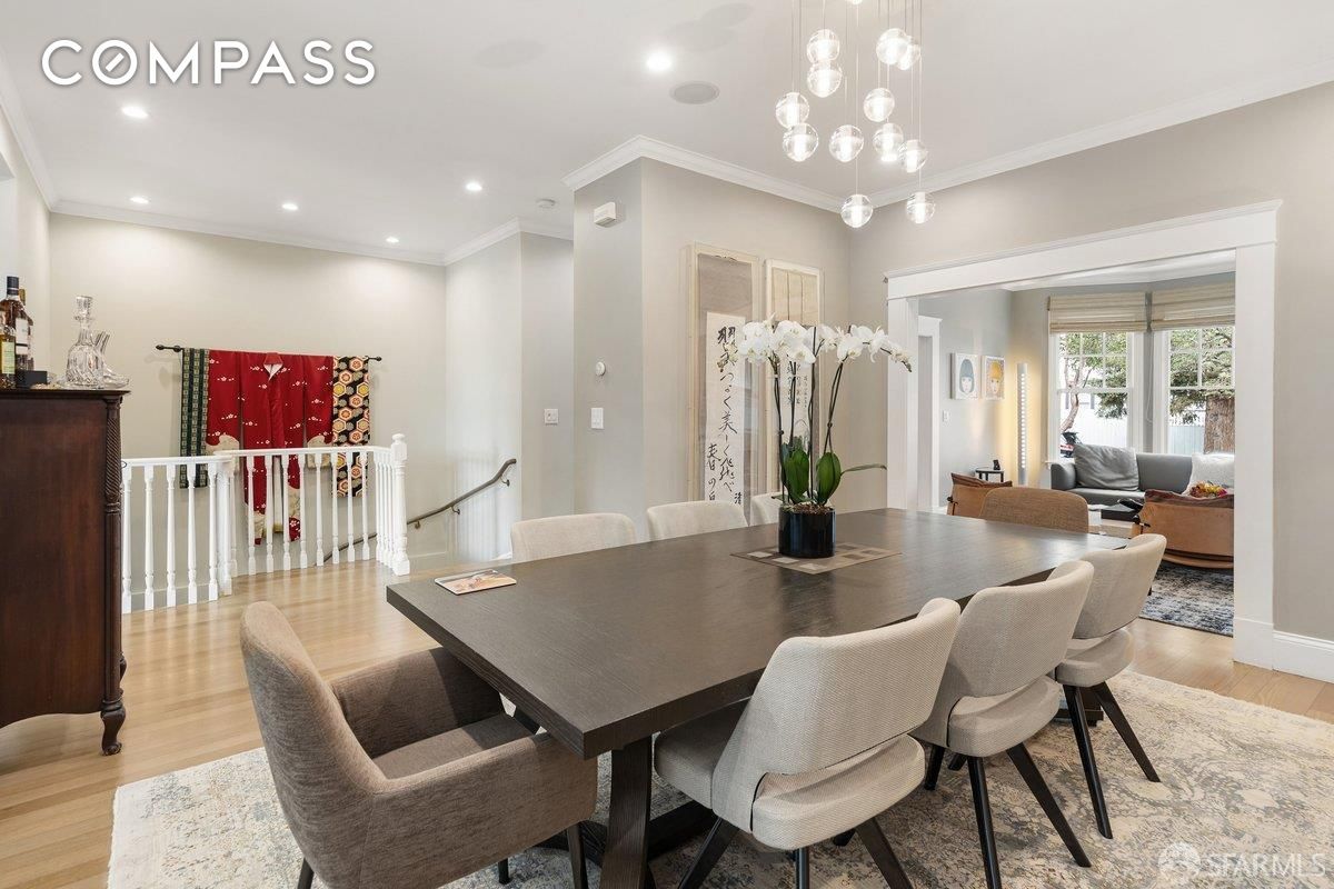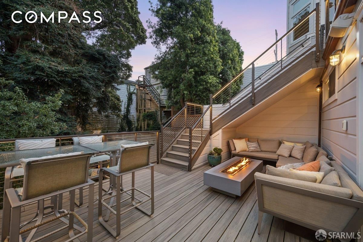 位于备受追捧的Noe Valley街区的宽敞且配置良好的住宅,提供三层生活空间和多层露台,通向美丽的后院。优雅的正式入口通向一个带有煤气壁炉和凸窗的温馨客厅,俯瞰着树荫成行的街道,通向优雅的餐厅。主层通向开放式厨房和家庭活动室,设有可出去的露台和通往花园的楼梯。华丽的厨房配备了石英台面和防溅板、定制橱柜、带座椅的中央岛台,以及包括Subzero冰箱、Miele洗碗机和Wolf燃气灶在内的高端电器。推拉门打开后,可以看到朝南的露台,可以欣赏到烧烤和东湾的“藏猫猫”美景。上层朝南的主套房采光充足,设有休息区、景观甲板、步入式衣橱和双人衣橱,以及带双洗手台和淋浴的套间浴室,浴缸上方设有按摩浴缸。另外两间卧室共用一个带石英梳妆台的走廊浴室,浴缸上方有淋浴,还有洗衣房。下层包括一个宽敞的家庭活动室,通向带座位和火坑的甲板,一间带法式门的卧室和一个完整的浴室。楼梯通向一个被成熟红木树遮荫的景观花园,院子旁有草坪和独立的娱乐室或健身房。内部可通往并排的两车库和储藏空间。全屋铺设硬木地板,配备辐射供暖,阁楼尚未开发,具有膨胀潜力。地理位置优越,靠近Noe Valley游乐场、24街商店、餐饮、学校和公园。