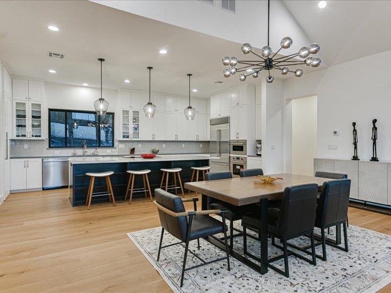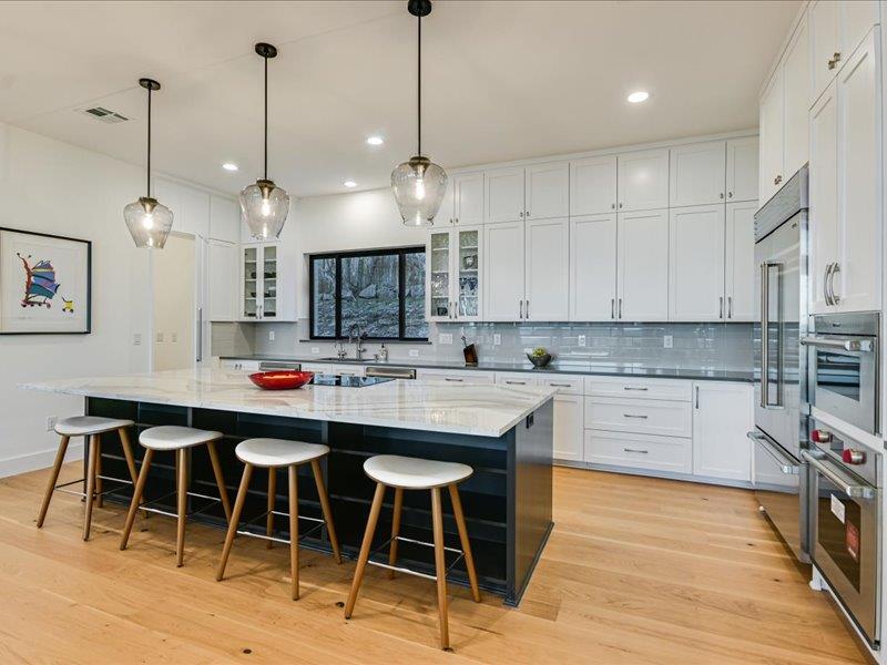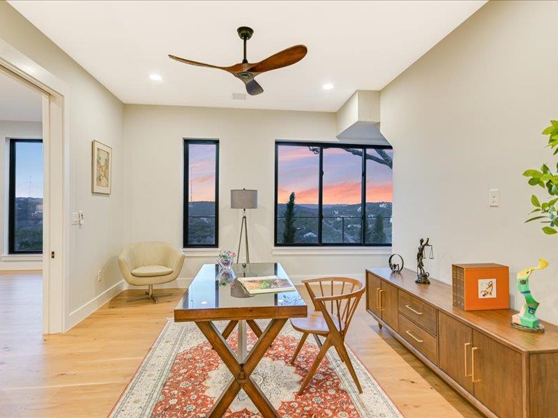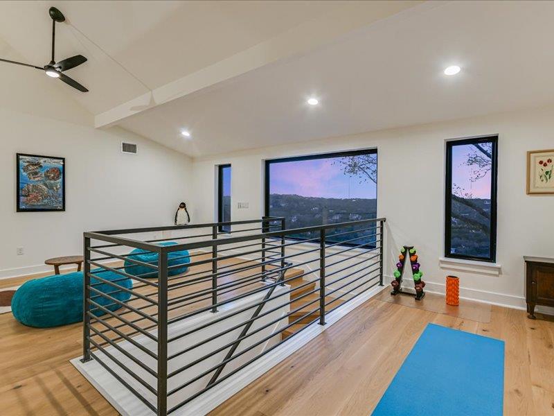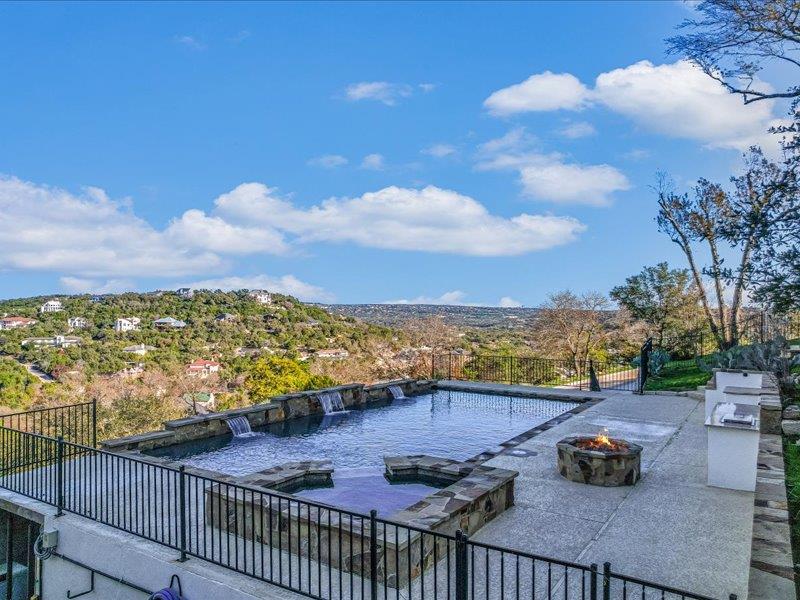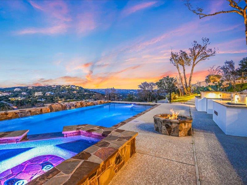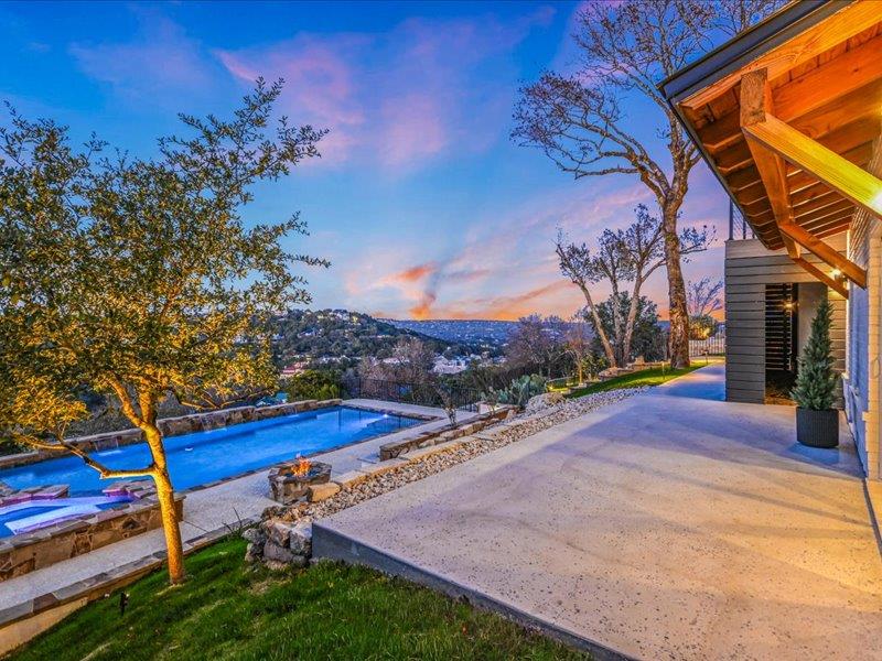 Vista on Via Media坐落在极受欢迎的西湖山丘一处罕见的山顶,占地略超过一英亩,并被划入顶级的Eanes ISD,提供全景丘陵乡村景观、极高的隐私和度假式生活,距离奥斯汀市中心仅15分钟车程。 这座五居五卫的住宅经过彻底重新构想,经过全面改造,融合了现代建筑与永恒设计。玻璃墙体勾勒出开阔的视野,宽大的白橡木地板、高耸的天花板和宽敞的生活空间营造出温馨而精致的氛围,非常适合日常生活和招待宾客。 主厨厨房是开放式客厅和餐厅的中心,特色是醒目的Cambria石英岛台、带隐藏备料储藏室的定制橱柜、Sub-Zero冰箱、Wolf烤箱、电磁炉、双Bosch洗碗机和Zephyr葡萄酒冰箱。 住宅设计为室内外无缝生活,开放式为宽敞的复合材料甲板,配有不锈钢钢索栏杆,俯瞰度假风格的18英尺×38英尺泳池、瓦斯火坑和精心策划的园林景观。独立的泳池边客房,配备私人卧室、全套浴室和凉亭式生活空间,为宾客、多代同堂生活或私人办公室增添了灵活性。 主套房是真正的度假胜地,拥有令人叹为观止的美景、私人露台、咖啡吧、额外的灵活房和水疗风格的浴缸。宽敞的次卧和楼上的额外灵活空间为工作、健身或娱乐提供了多样化选择。 所有主要系统——包括框架、电气、管道、管道、保温、门窗——都已更换,带来现代建筑的安心感。其他亮点包括帝国大道风格的线性壁炉和环氧涂层车库地板。 这是在西湖最受欢迎的地段之一拥有一个私密、风景丰富的保护区的难得机会
