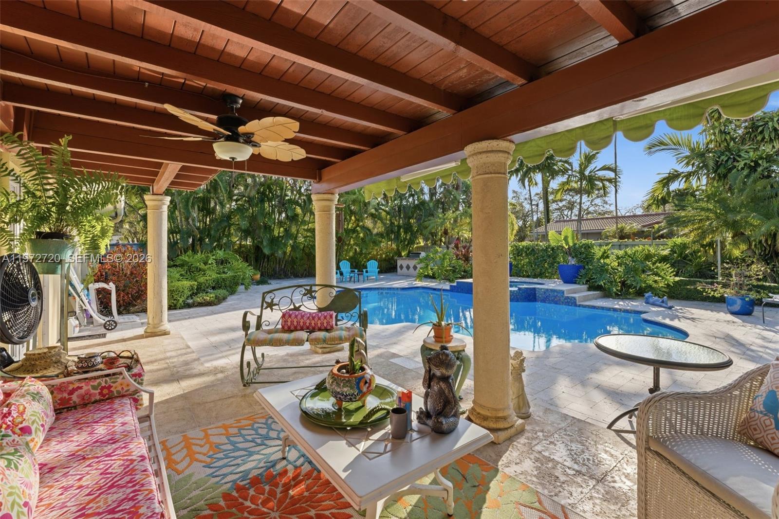 一个维护得很好的热带度假地,坐落在一条安静、树木成荫的街道上。这座迷人的单层住宅完美融合了舒适、隐私和南佛罗里达生活方式。一到门口,你就能被宽敞的红色铺装车道、郁郁葱葱的园林和成熟的棕榈树所迎接,这些树木营造出令人惊艳的路边吸引力。房子温暖的外观和诱人的入口为内部定下了基调。走进明亮通透的室内,采用中性色调、优雅的瓷砖地板,以及开放流畅的布局,非常适合日常生活和招待宾客。餐厅充满自然光,与厨房无缝连接,厨房设有早餐吧台,并可俯瞰后院绿洲。法式门带你进入私人户外天堂。后院拥有一个闪耀的泳池,周围环绕着热带景观,提供极佳的隐私,是聚会、周末放松或沐浴迈阿密阳光的理想场所。宽敞的场地为招待宾客、休闲或打造梦想中的户外布置提供了充足的空间。这座住宅便利地位于顶级学校、购物、餐饮和主要道路附近,既安静又便利。这是在迈阿密一个极具吸引力的社区拥有一处可入住房产的难得机会,舒适、魅力与生活方式完美融合。