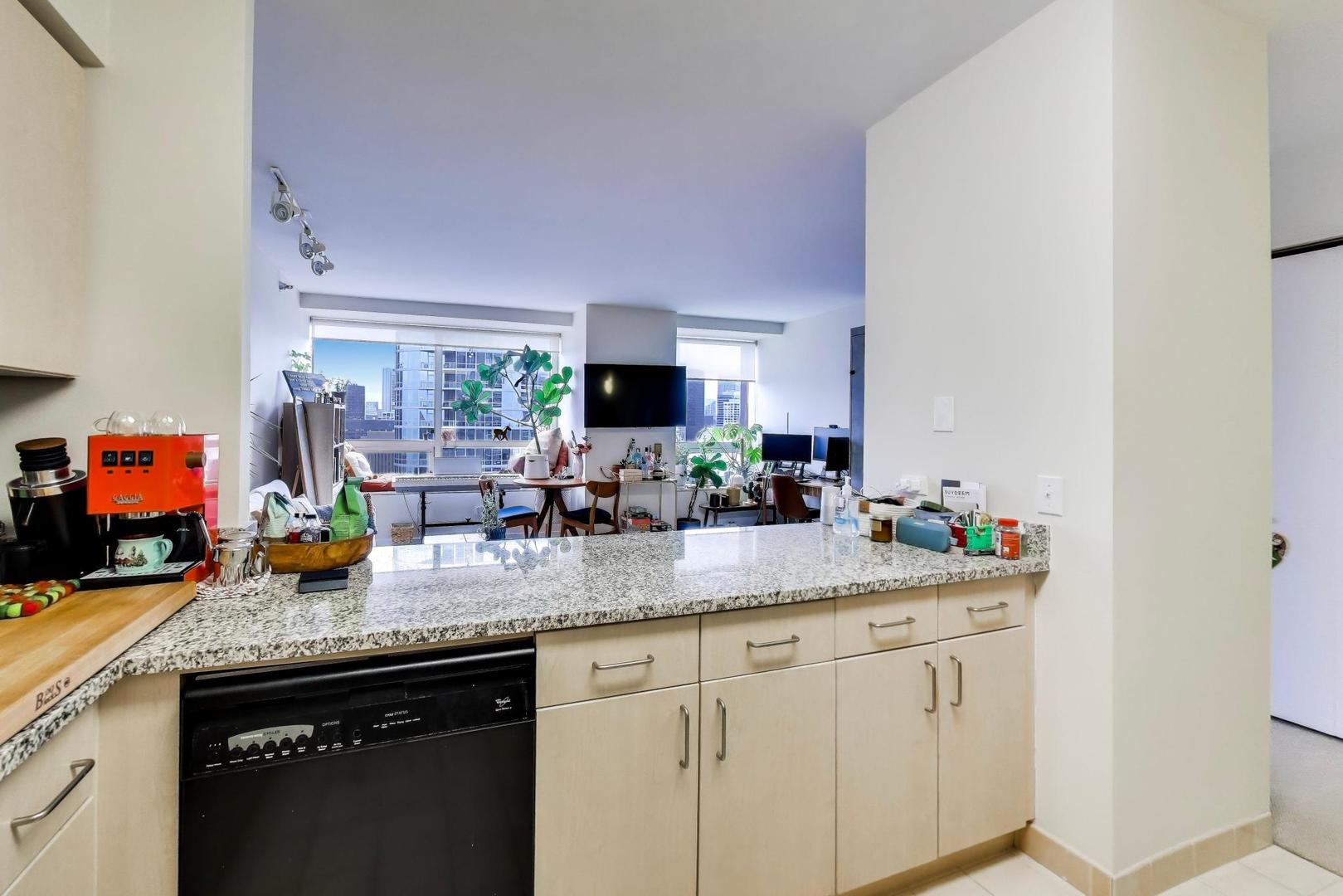 从街头镇39层望去的壮丽景色!从39层明亮且设备齐全的工作室醒来,欣赏令人屏息的天际线和城市景观。定制的墨菲床最大化您的居住空间而不牺牲时尚,而内置洗衣烘干机则为您带来从第一天起就能享受的日常便利。512 N McClurg 是一栋真正提供全方位设施的建筑——24小时门卫、现场管理和维护、先进的健身中心、最近翻新的派对套房和会议室,以及自行车存放、接待室和带烧烤台的精美日光甲板。这个地点无可匹敌。距离Whole Foods、Target、Michigan Avenue、Navy Pier以及社区常客如Roberts Pizza、Volare和Minghin仅几步之遥——此外,CTA交通便利,方便出行。建筑内提供月租停车位。