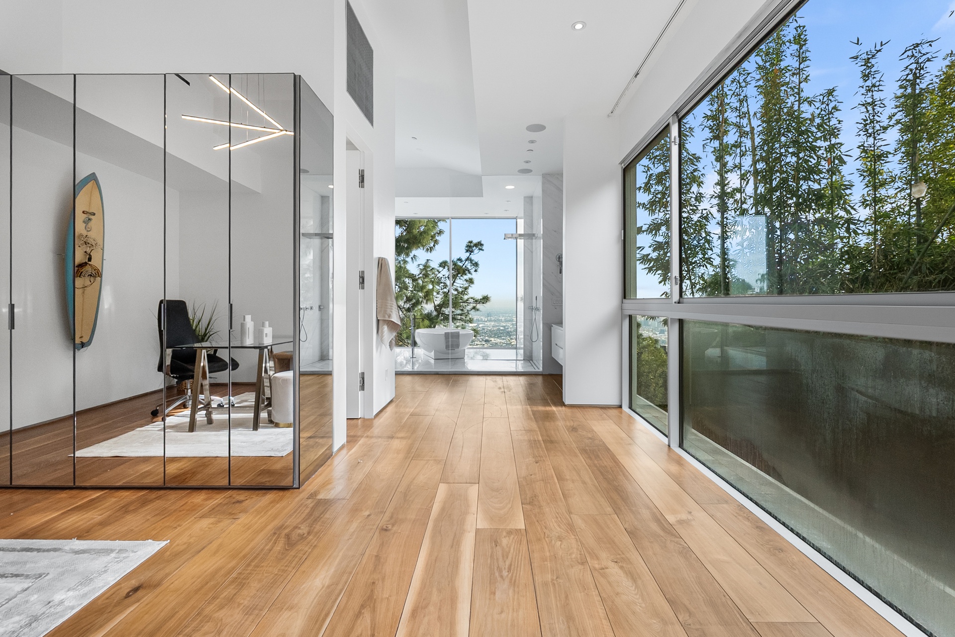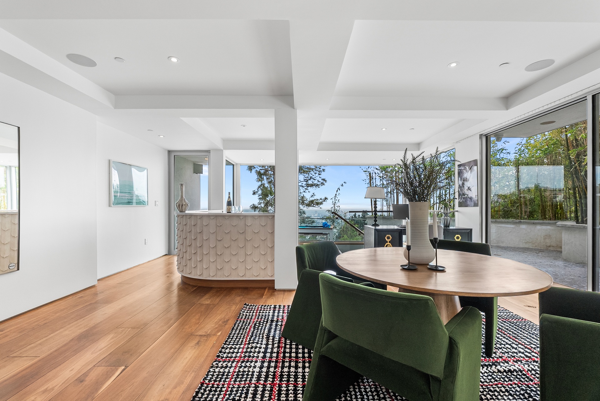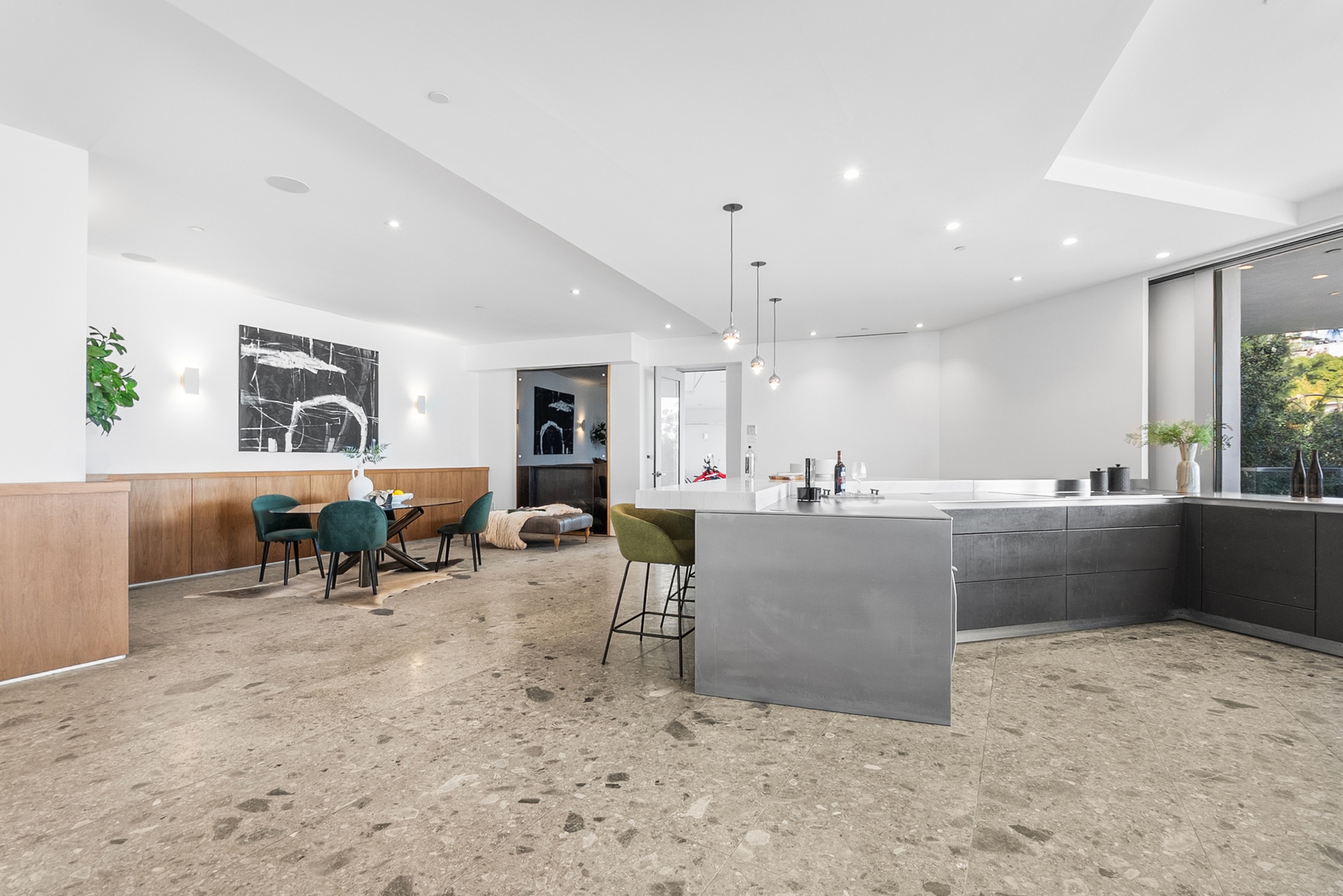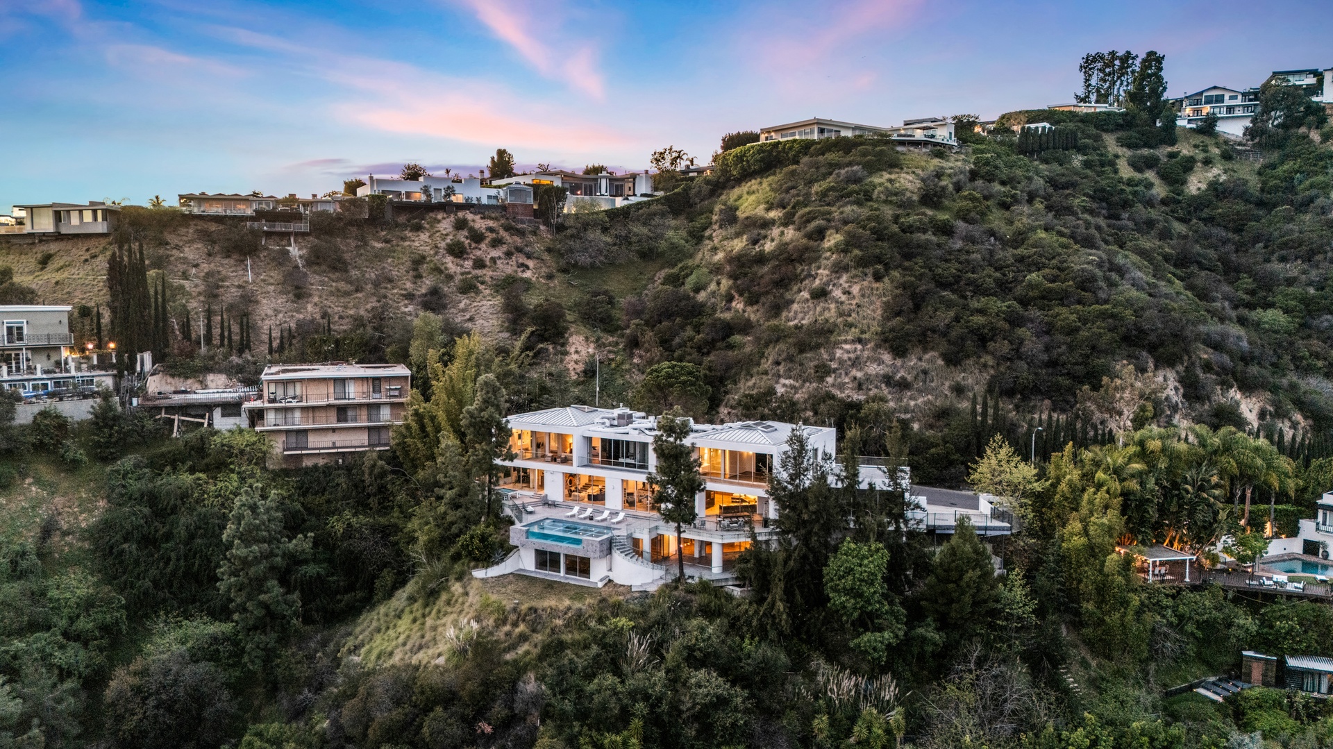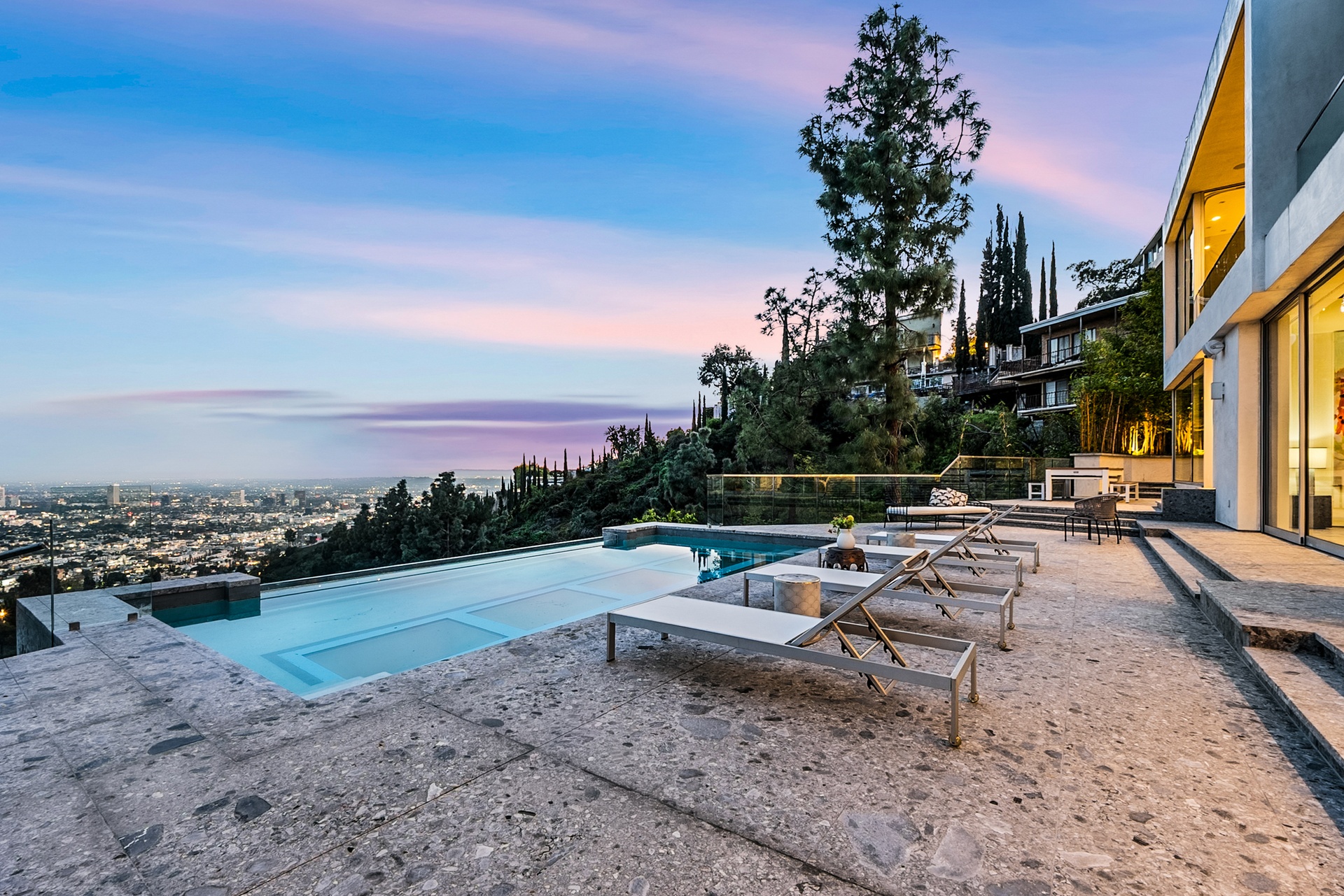 8854号Thrasher大道坐落在标志性的日落大道上方,位于著名的鸟街,是好莱坞山的私人度假胜地,拥有壮丽的喷气式客机城市景观和独特的建筑特色。由Studio Dardo设计,这座约1万平方英尺的住宅融合了中世纪现代风格与精致的当代设计。这座房子拥有5间卧室和10间浴室,设计巧妙,展厅墙面高耸,非常适合展示重要的艺术收藏。温暖的木材和天然石材饰面衬托出宽敞的生活空间,落地玻璃门通向宽敞的露台,营造出室内外无缝衔接的空间,非常适合招待宾客和日常生活。这块超过半英亩(约26,000+平方英尺)的地块为这个备受追捧的飞地提供了极为罕见的隐私和规模。定制的玻璃封闭车库成为引人注目的建筑核心和收藏展示平台。距离世界级的餐饮、夜生活和购物仅咫尺之遥,这座卓越的酒店在洛杉矶最受追捧的社区之一中,提供了隐私、尊贵与便利的终极平衡。