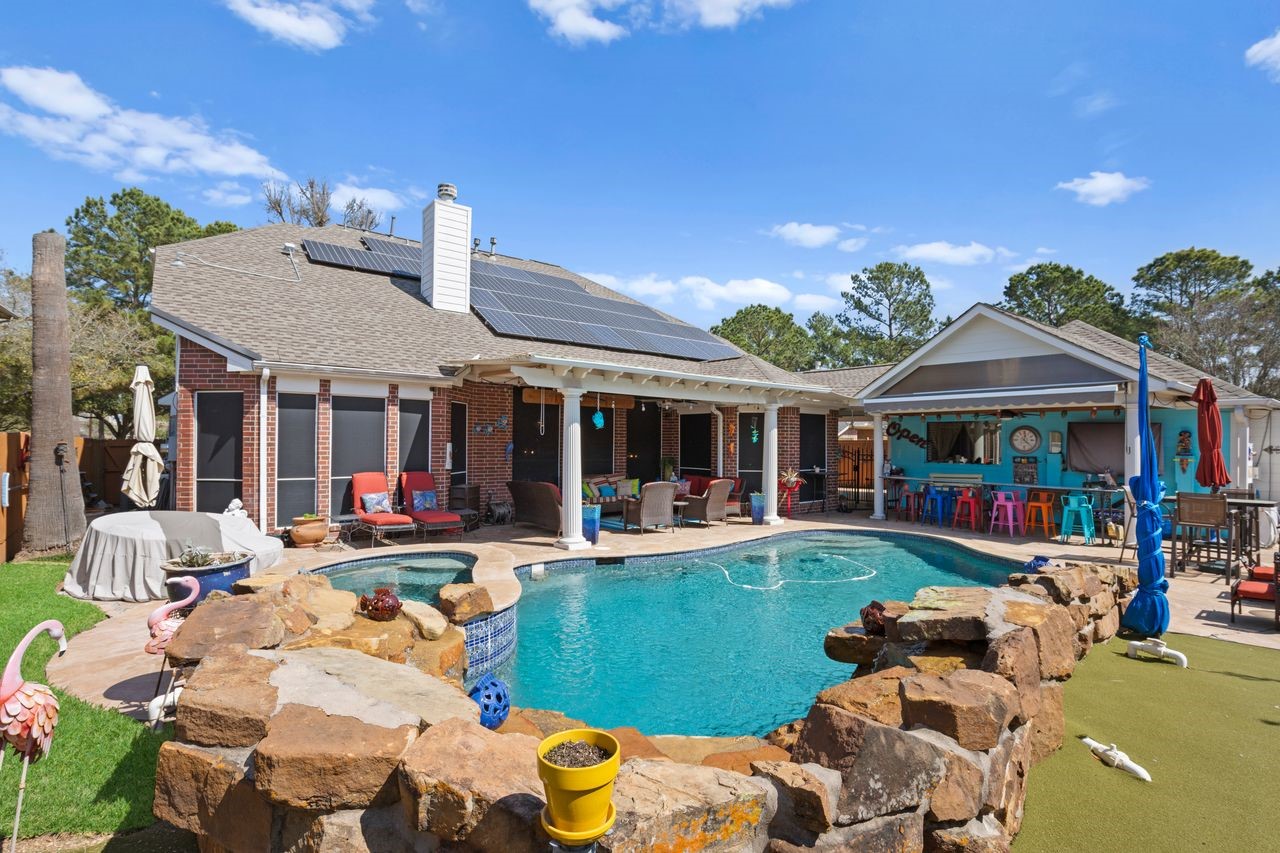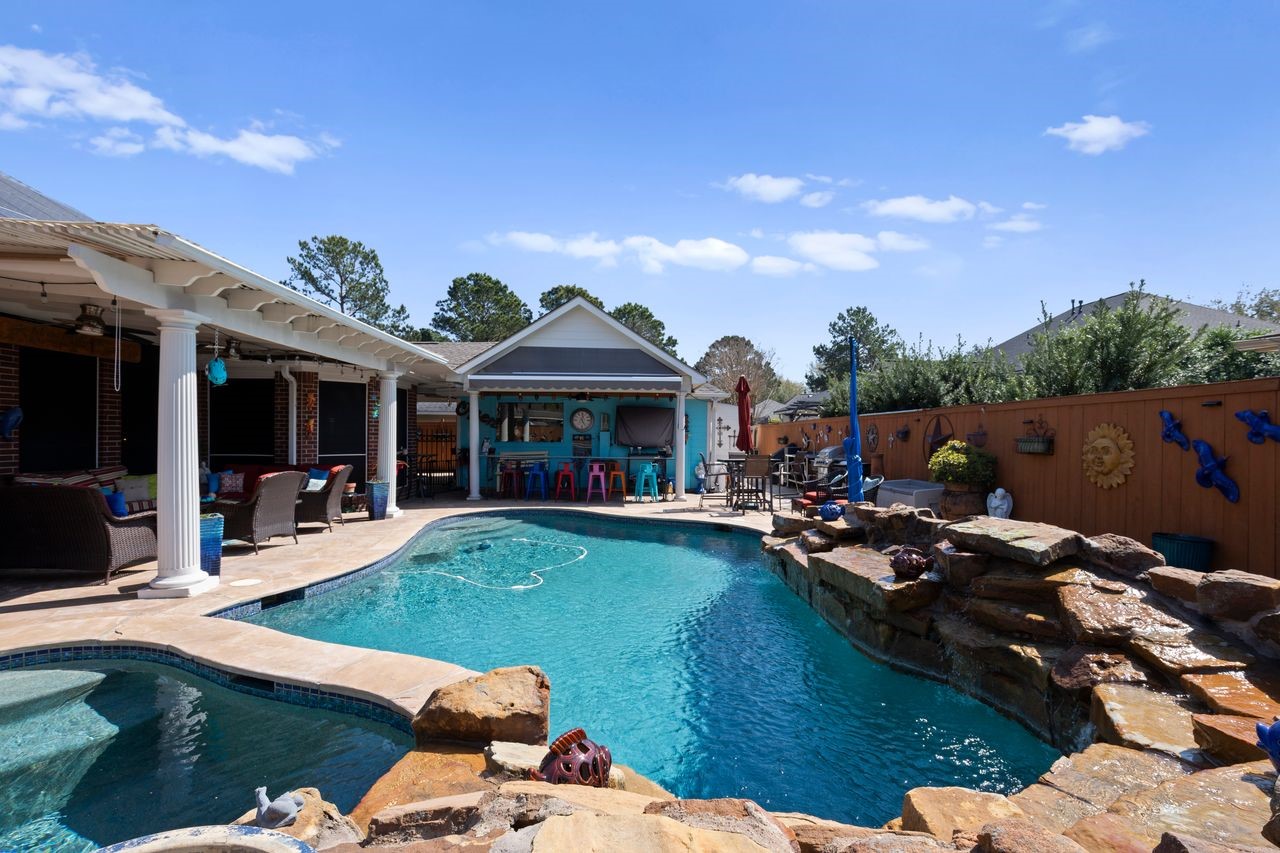 欢迎来到这座美丽的两层住宅,提供4间卧室、3间全套浴室和2间半卫浴。社区前方的前样板房。宏伟的17英尺双开门入口和锡制点缀的厨房天花板增添了个性,更新的木质和瓷砖地板以及拱形天花板营造出开阔且温馨的氛围。后院设有闪耀的泳池和热水浴缸,非常适合招待和放松。一大亮点是保温车库,配备空调、暖气和半卫浴,非常适合用作男士藏身处、车间、单间或婆婆套房。凭借隐私、门面吸引力和多功能空间,该房产为寻求即入住且配备卓越设施的买家提供了极高价值。距离市中心仅几分钟车程,便于餐厅和购物。休斯顿豪华折扣店就在附近。