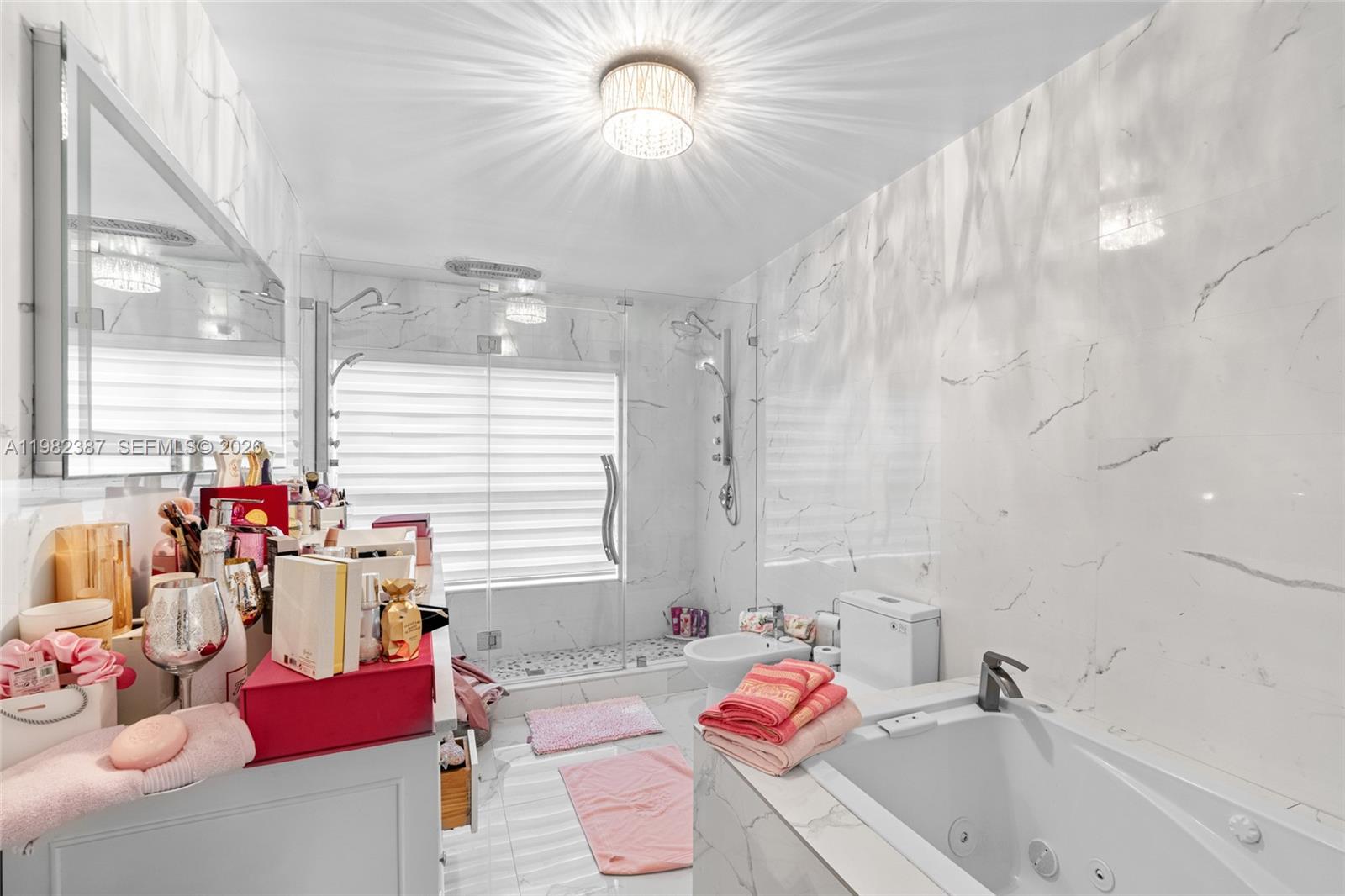 这是一套完全翻新的四居室三卫住宅,设有独立的岳父母宿舍/办公区,非常适合大家庭或租赁收入。这栋即入住的房产配备了现代厨房、新电器、精美升级的浴室以及优雅的大理石地板。最近的升级包括三年前更换的屋顶和撞击窗,以增强保护和节能效果。该物业全面围起,设有电围栏,并配备了监控摄像头以增加隐私和安全。享受带有按摩浴缸的大型露台区,非常适合户外娱乐。地理位置居中,靠近鸟路和127大道,方便前往主要高速公路、A+学校、购物中心、杂货店和商场。没有业主协会。